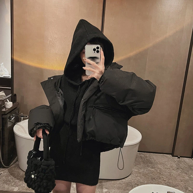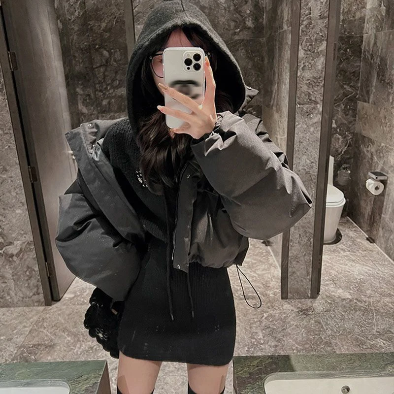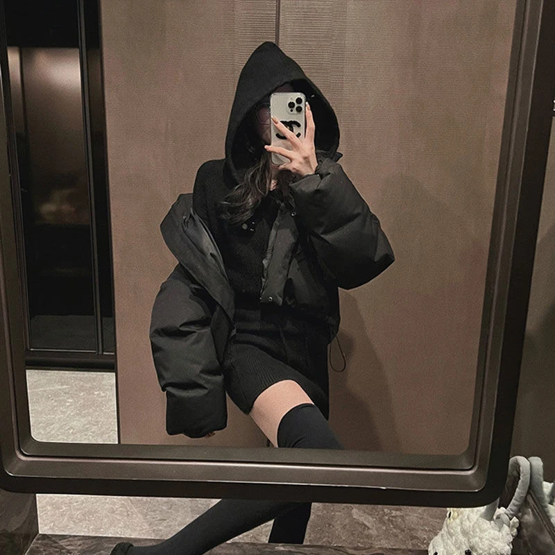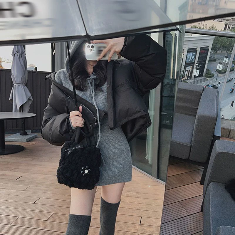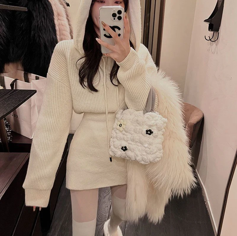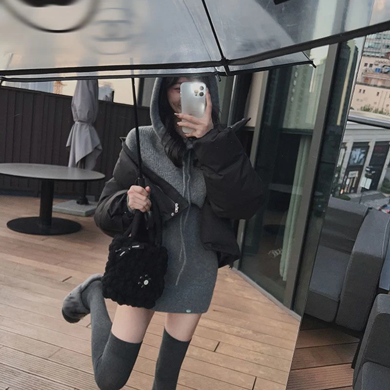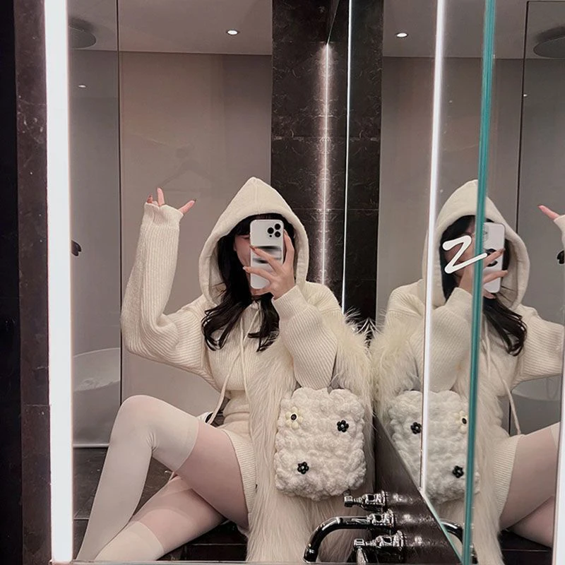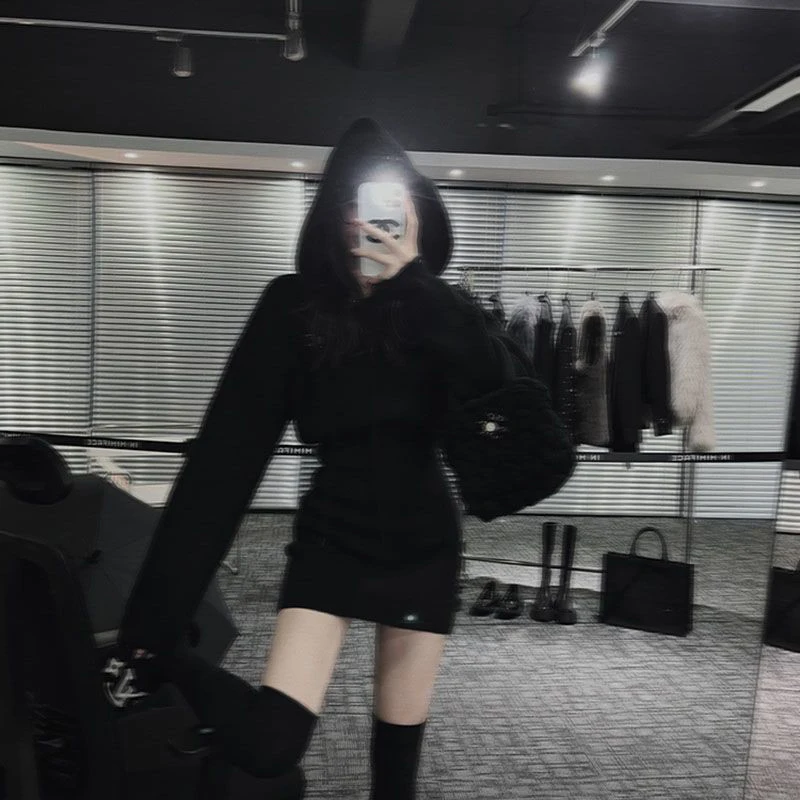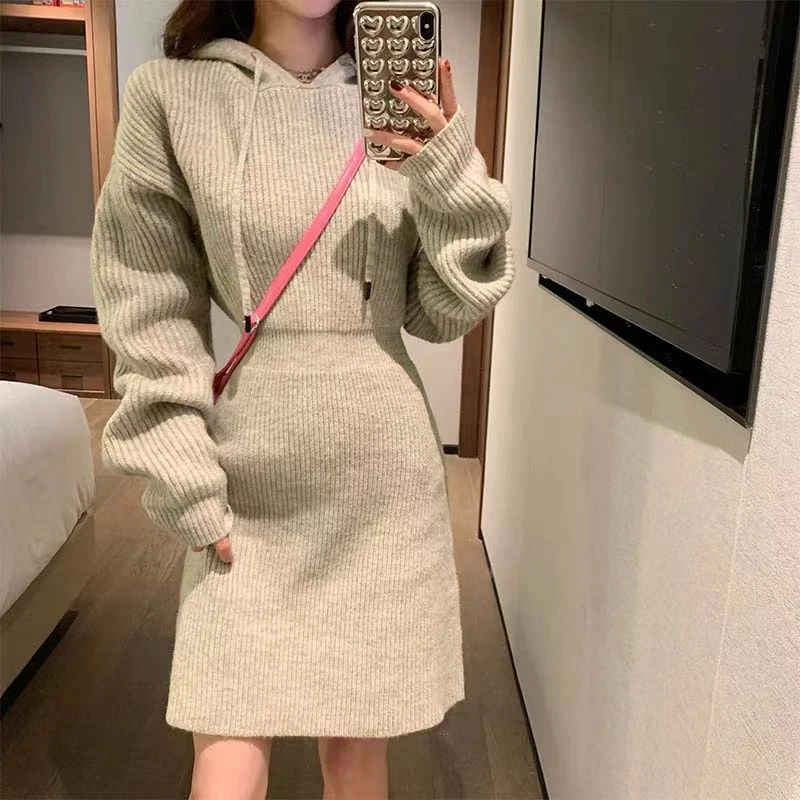 GETADME MEXZT Streetwear Knitted Mini Dress Women Hooded Sweater A Line Dresses Winter Korean Solid High Waist Slim Casual Vestidos New