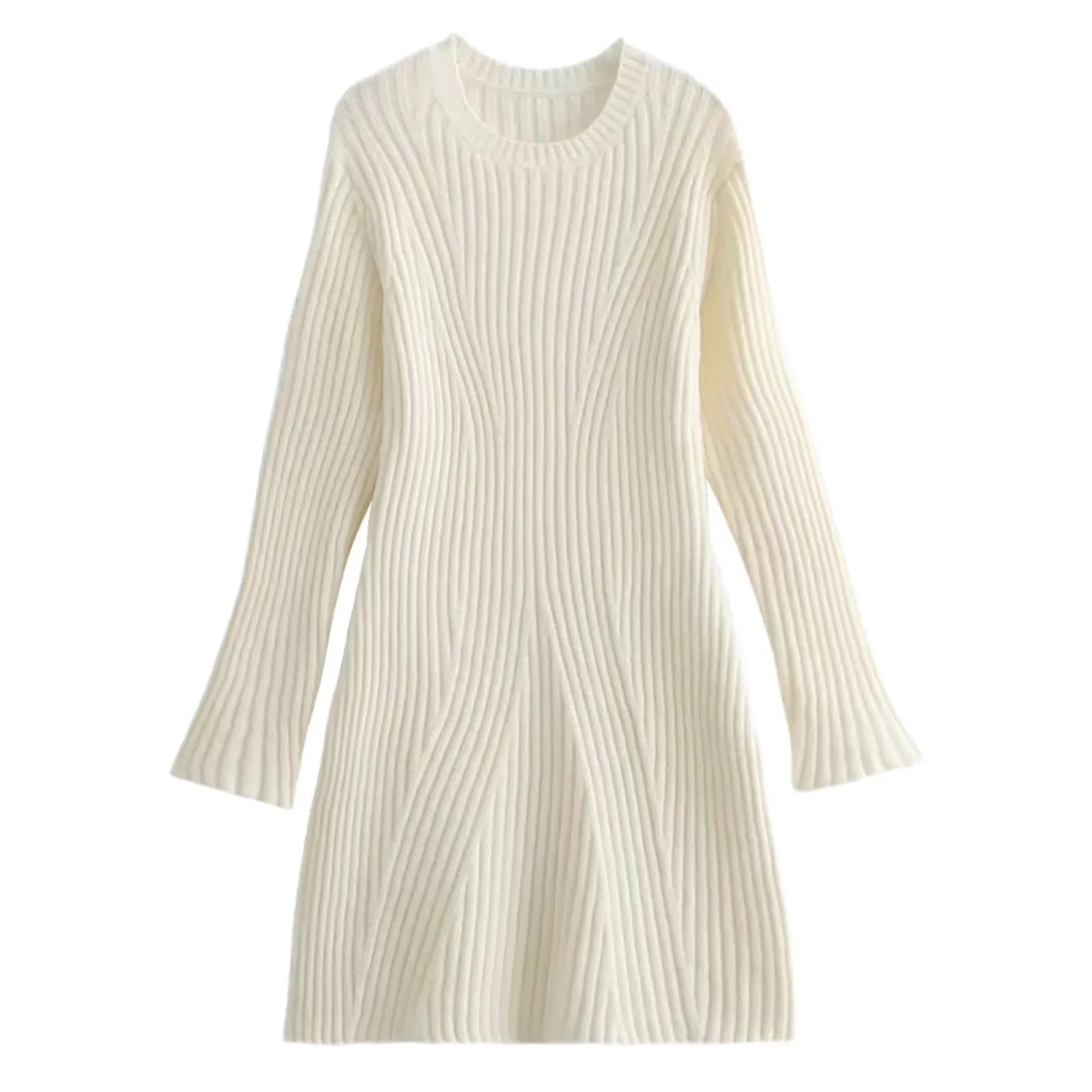 GETADME Sweater Dress Women's Elegant Solid Knitted Mini Dress Fashion Long Sleeve O Neck Sexy Dresses Autumn Winter Female A-Line Dress