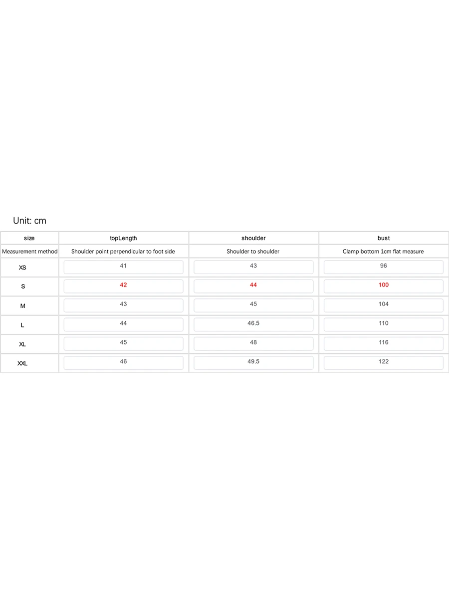 S Length: 42 Bust: 100 Shoulder: 44