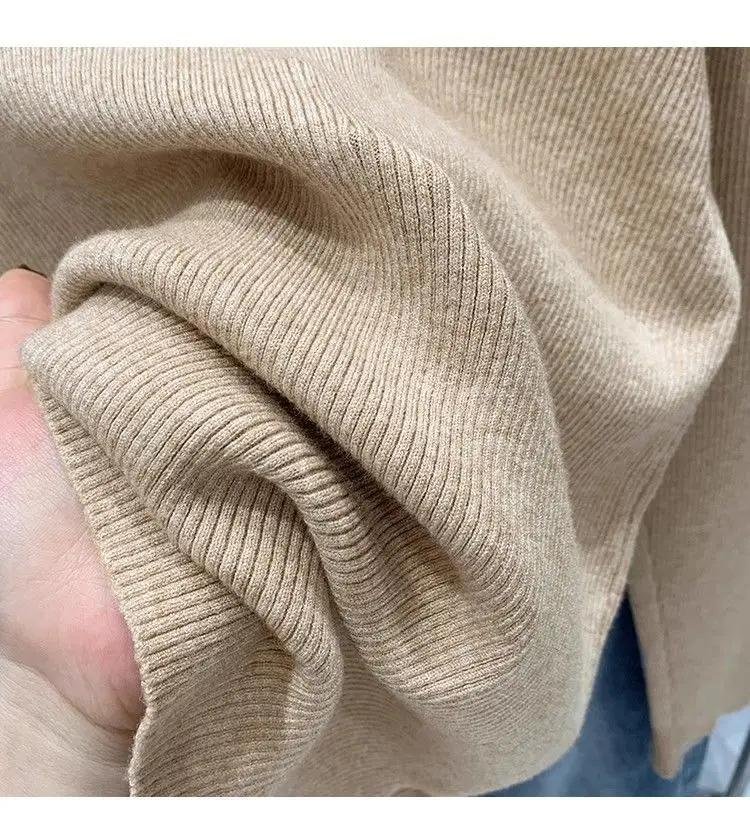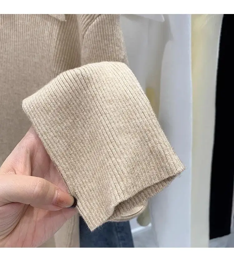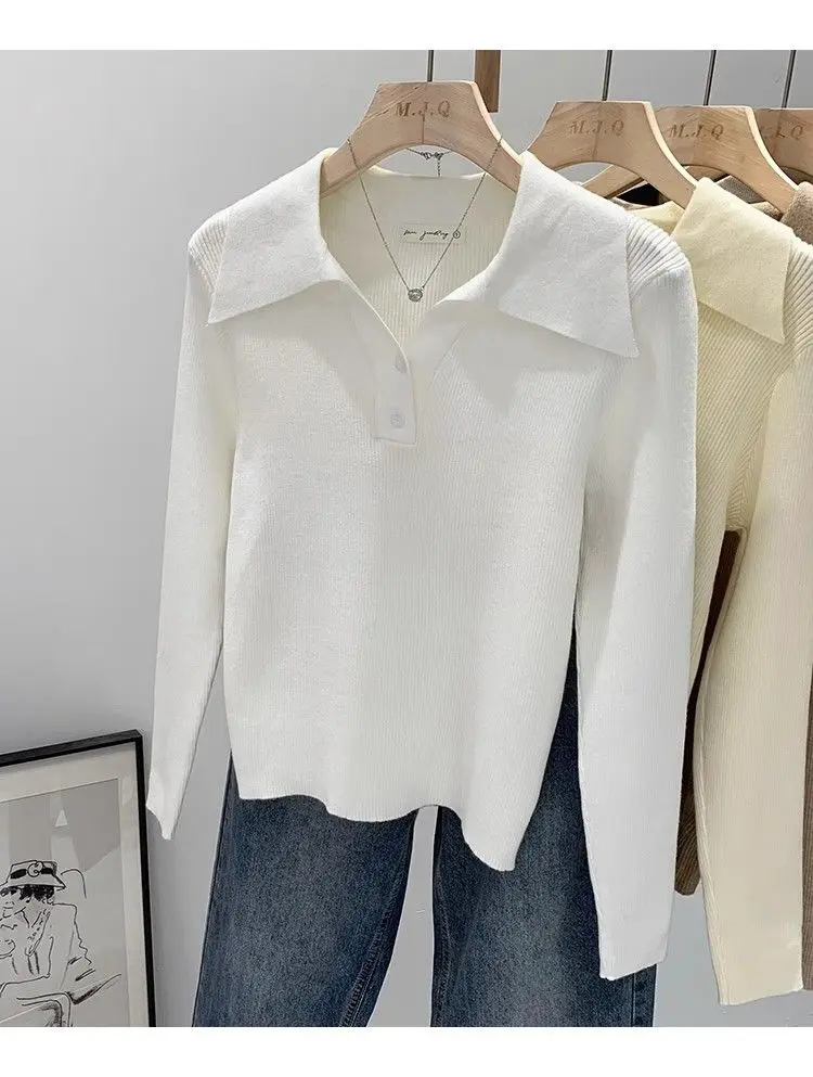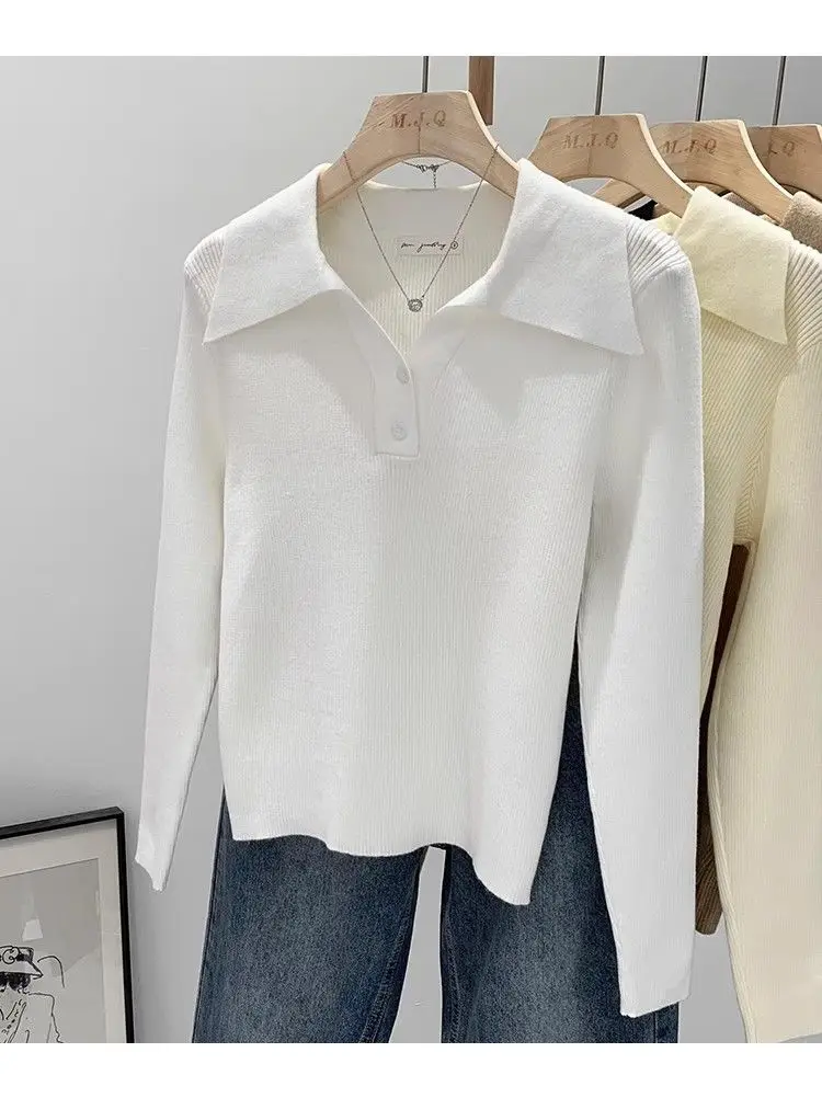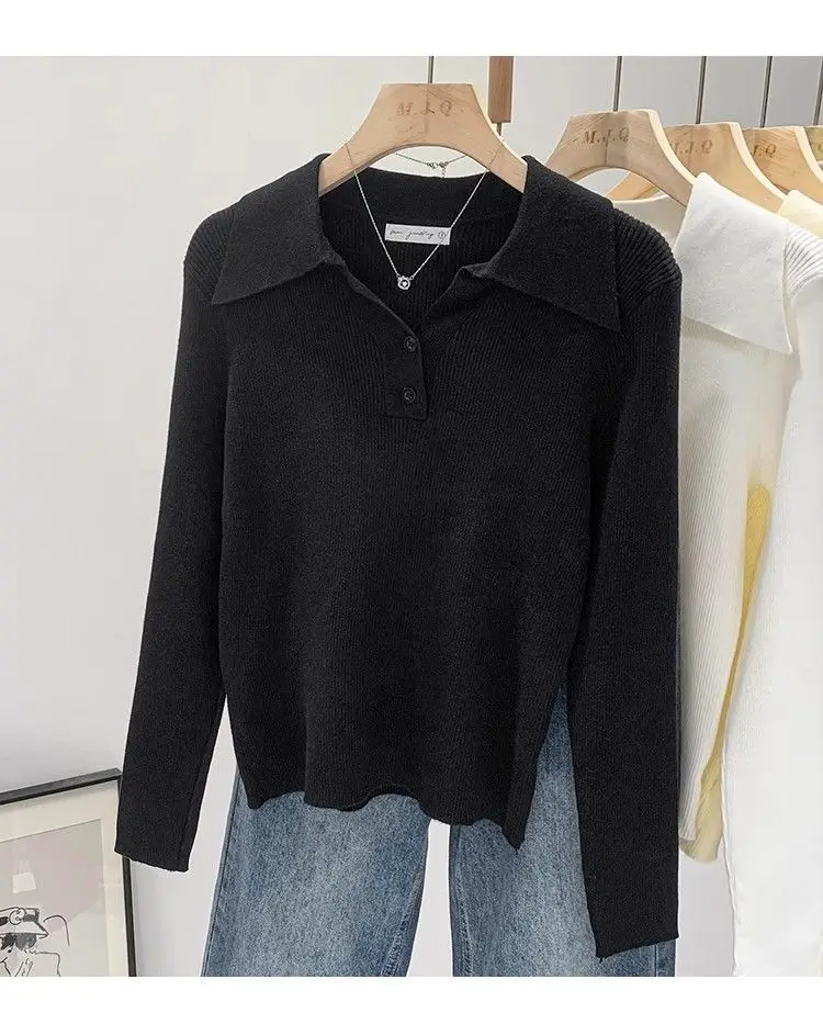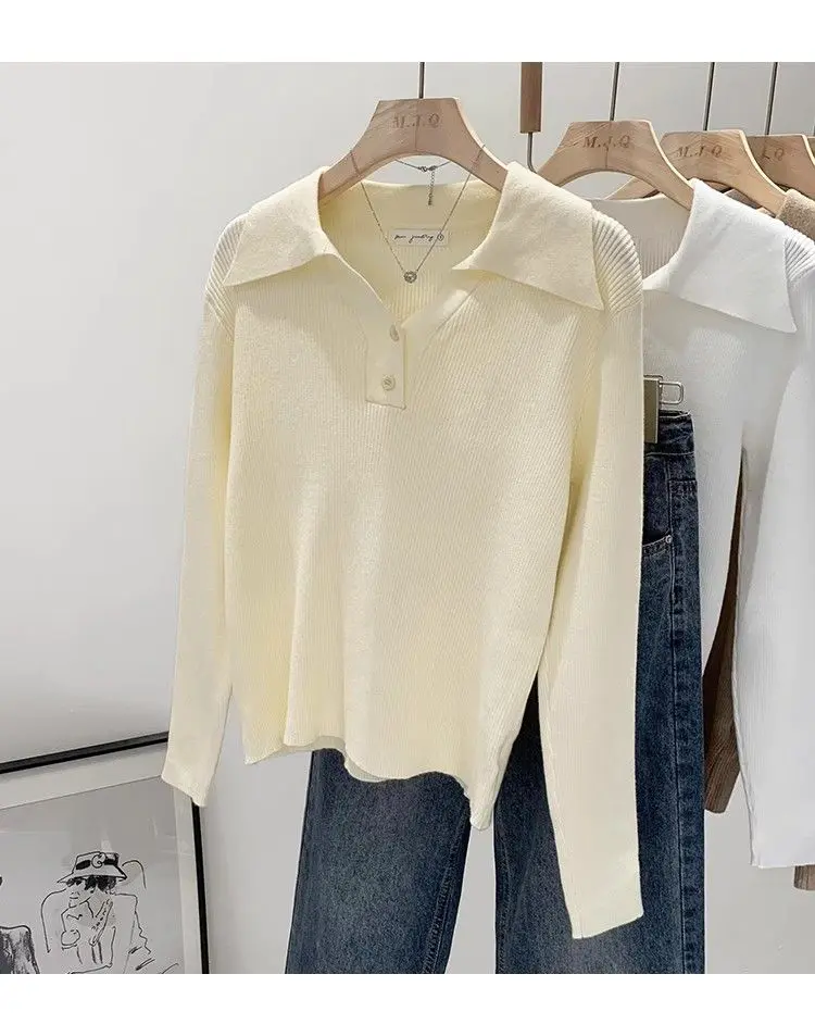 GETADME Women's Clothing Basic All-match Polo Collar Pullovers Autumn Winter Casual Loose Long Sleeve Sweaters Elegant Chic Button Tops