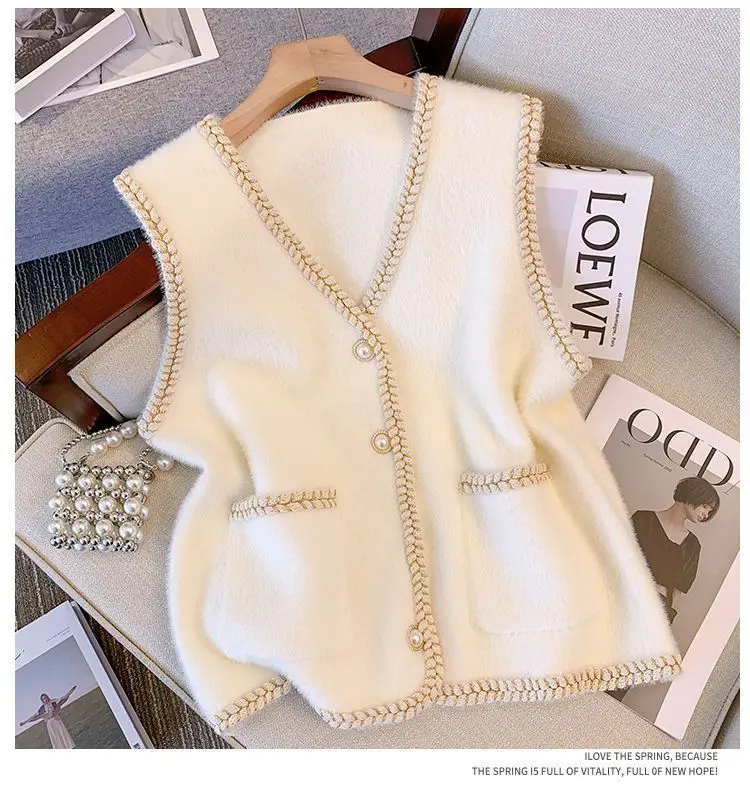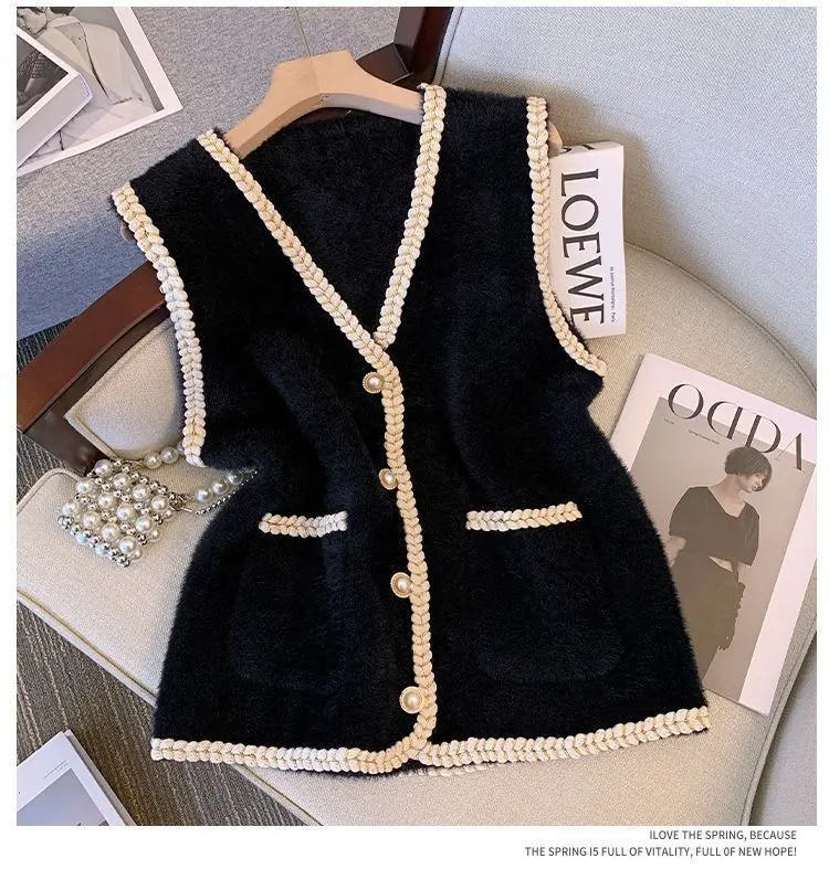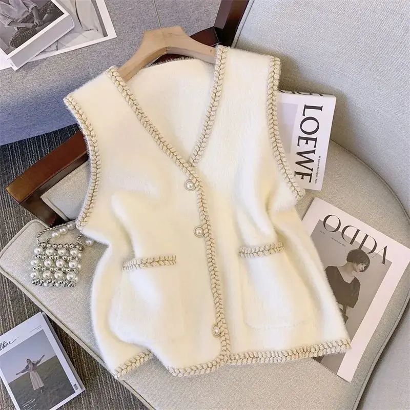 GETADME Women's Clothing Temperament Knitted Vest Cardigan Autumn/Winter Elegant Pockets Sweater Lady Basic V-neck All-match Button Tops
