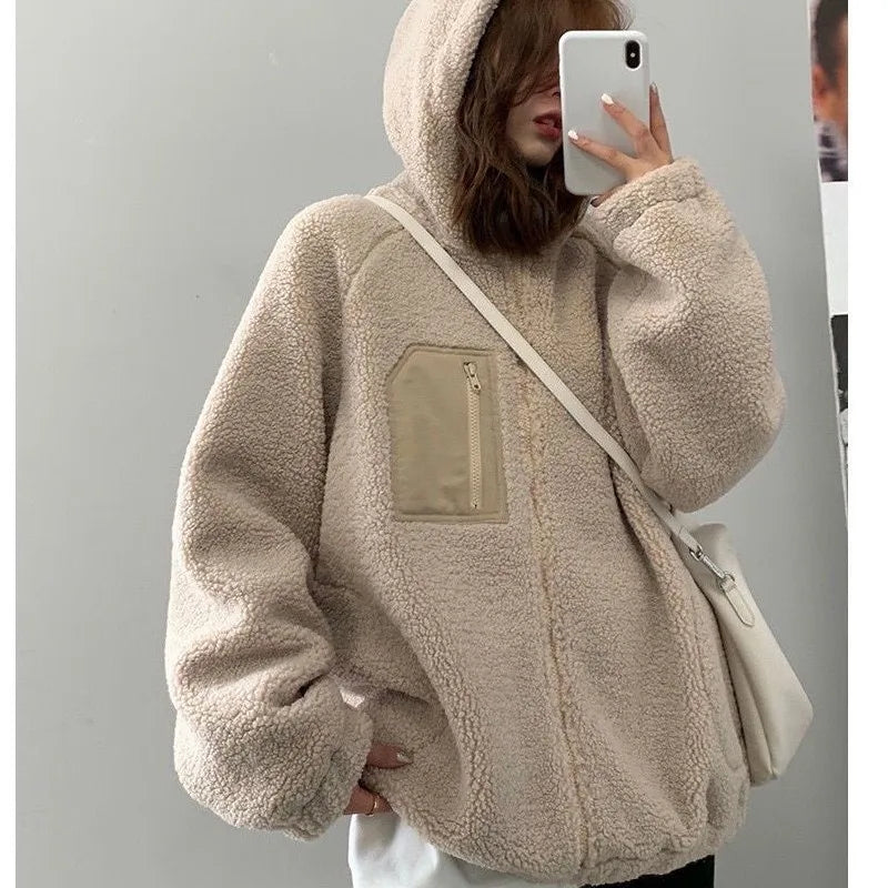 Lamb Plush Winter Clothes Women Vintage 2022 Thickened Sweatshirt Women Tops Loose and Lazy Hoodies Women Coat