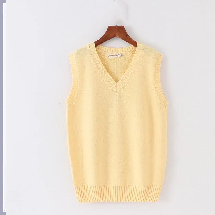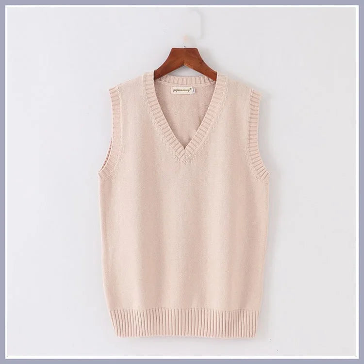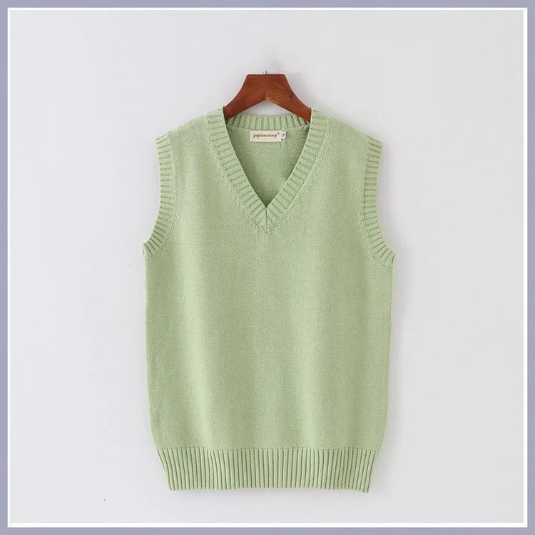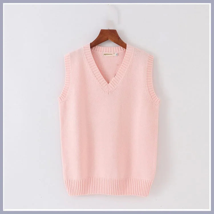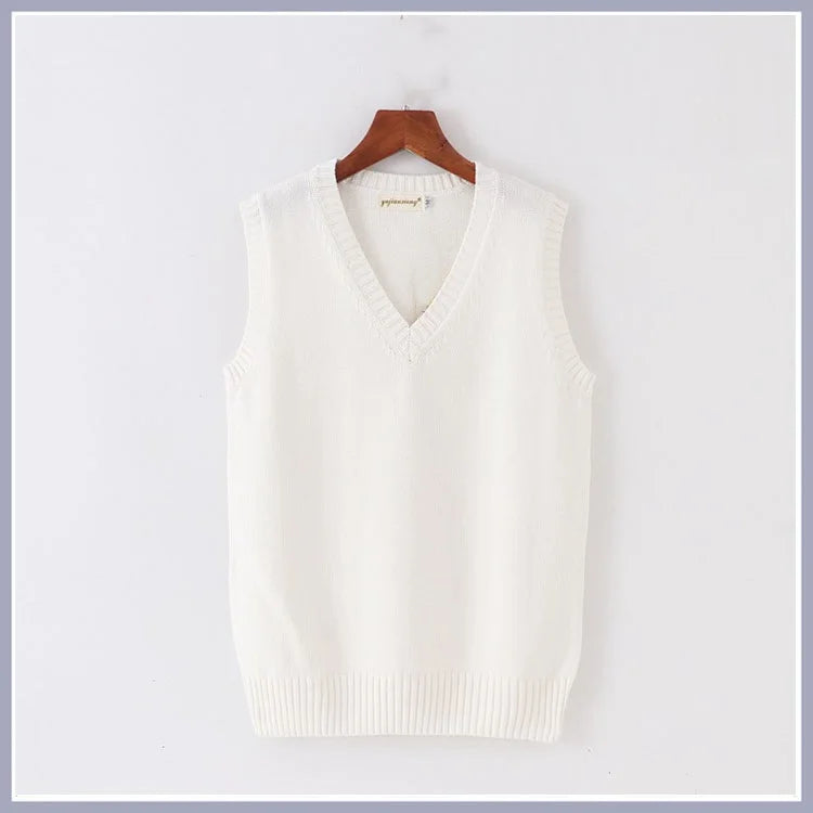 Getadme Sleeveless Sweater Vest Women Men V-neck Preppy Students Boys Girls Classic Spring Knitted Jumper Korean Fashion Retro Vest