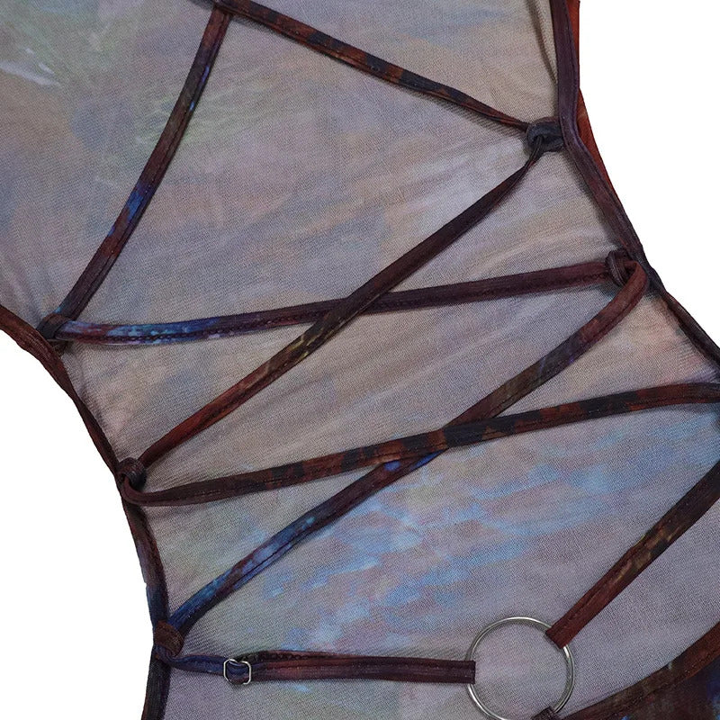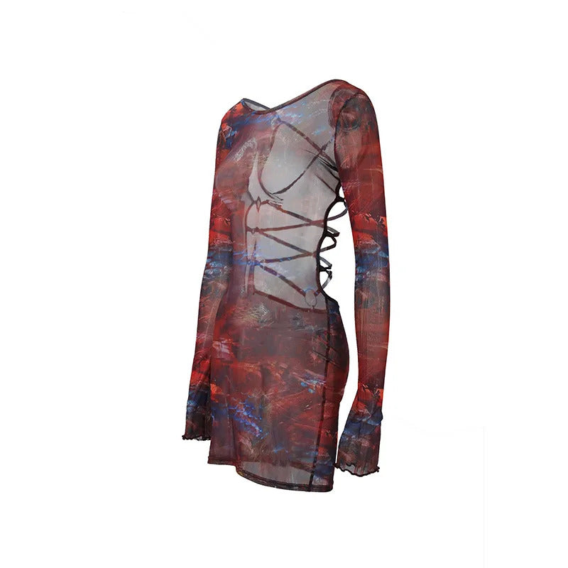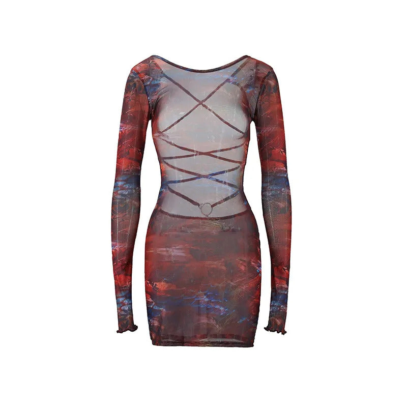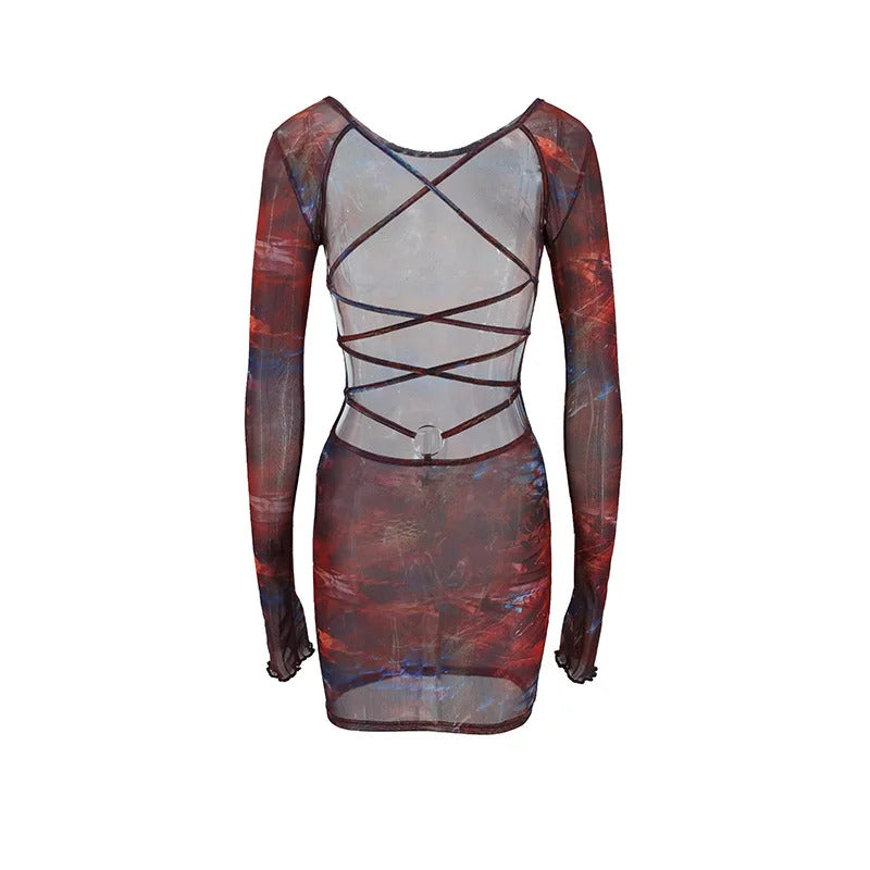2025 New Sexy Women's Halter Lace-Up Bodycon Dress Europe & US Style Slim Fit Long Sleeve Low Waist Party Club Dress