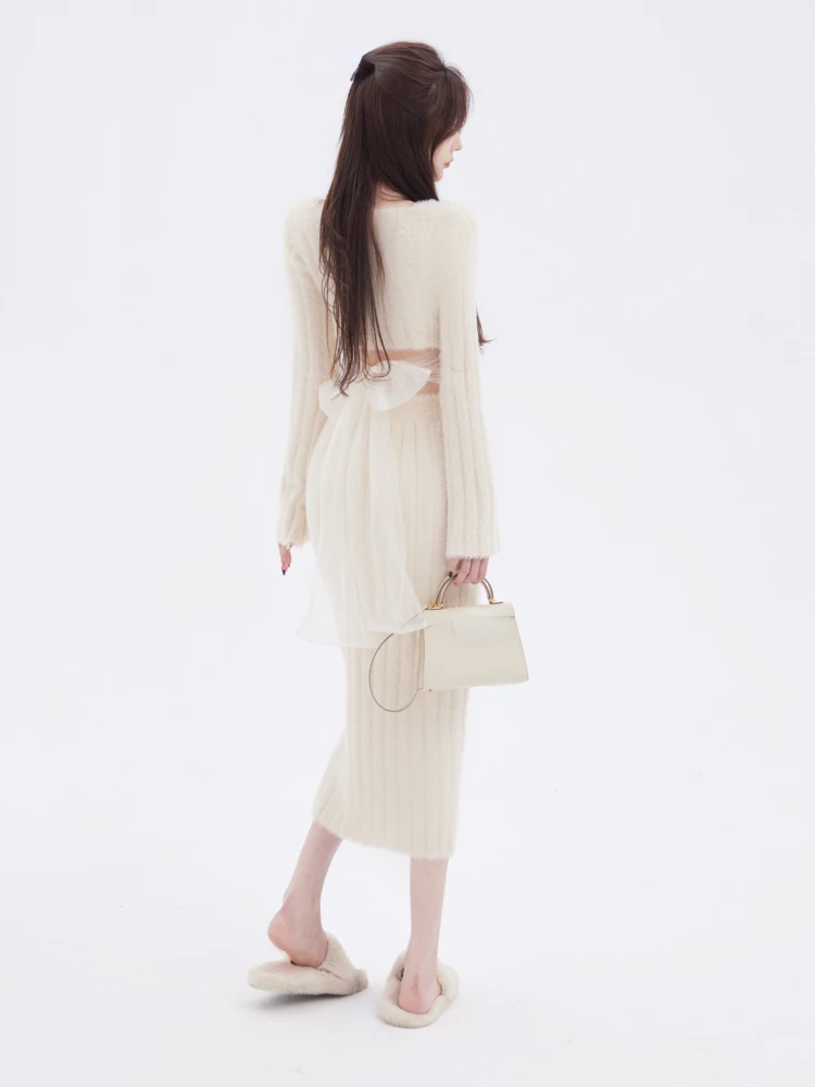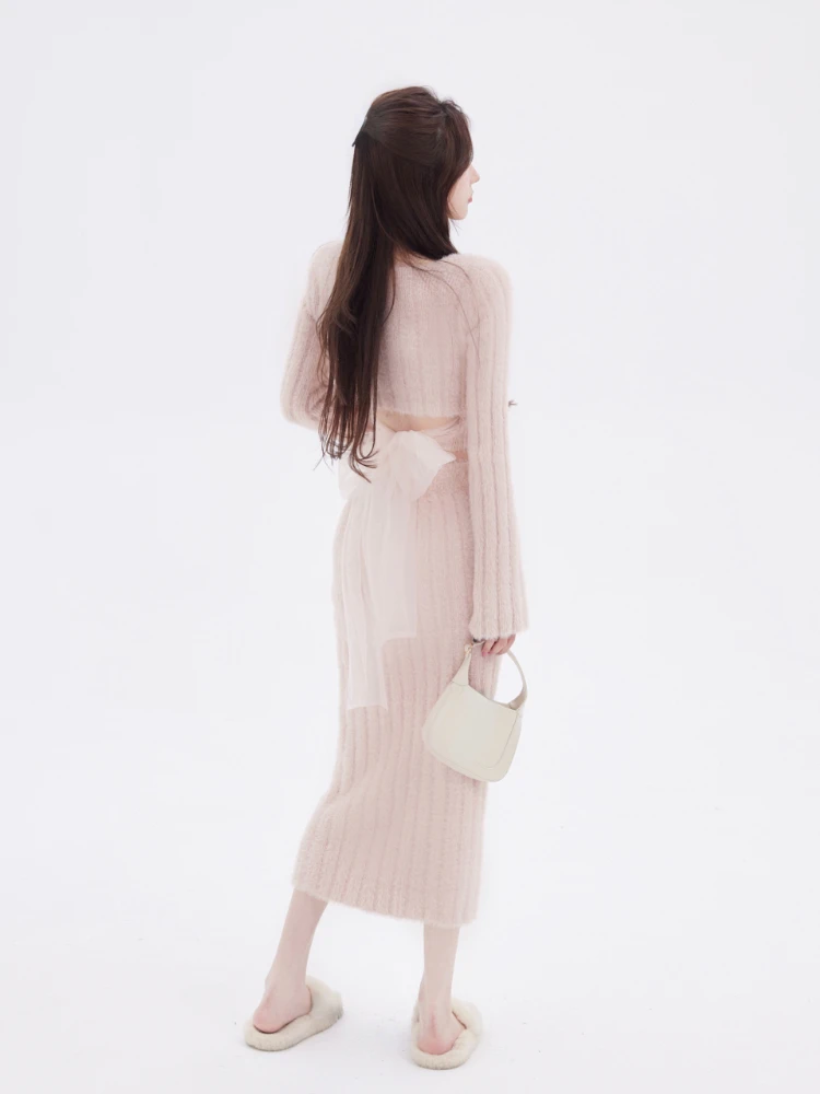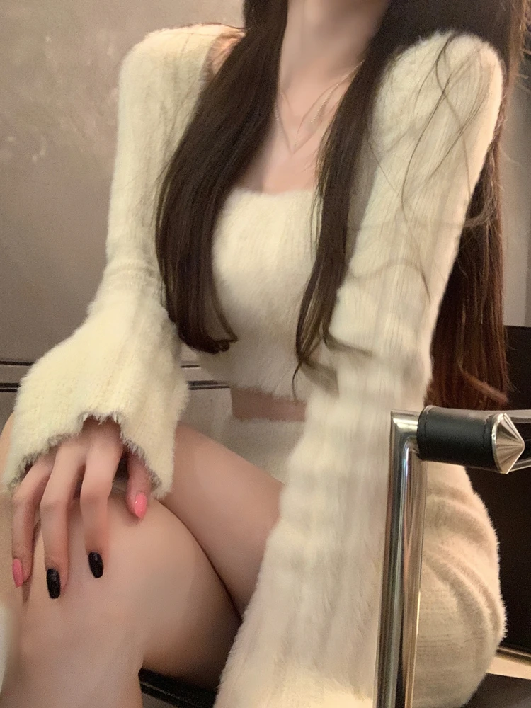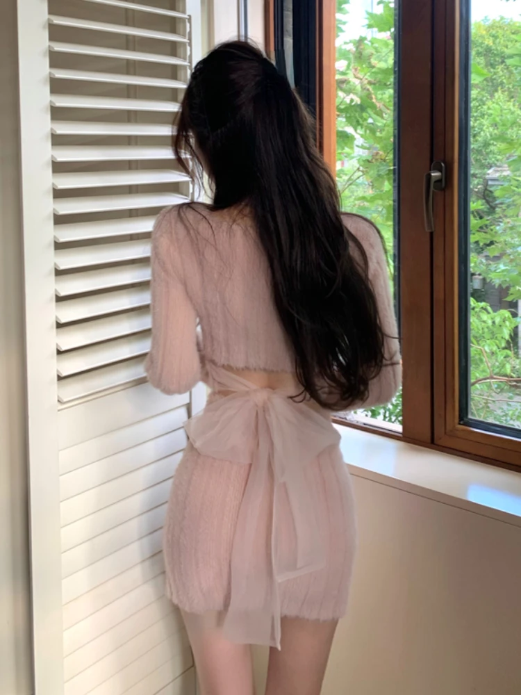 GETADME 2025 Autumn Elegant Knitted 2 Piece Dress Female Party Y2k Mini Dress + Office Lady Short Skirt Korean Fashion Sweater Chic Suit