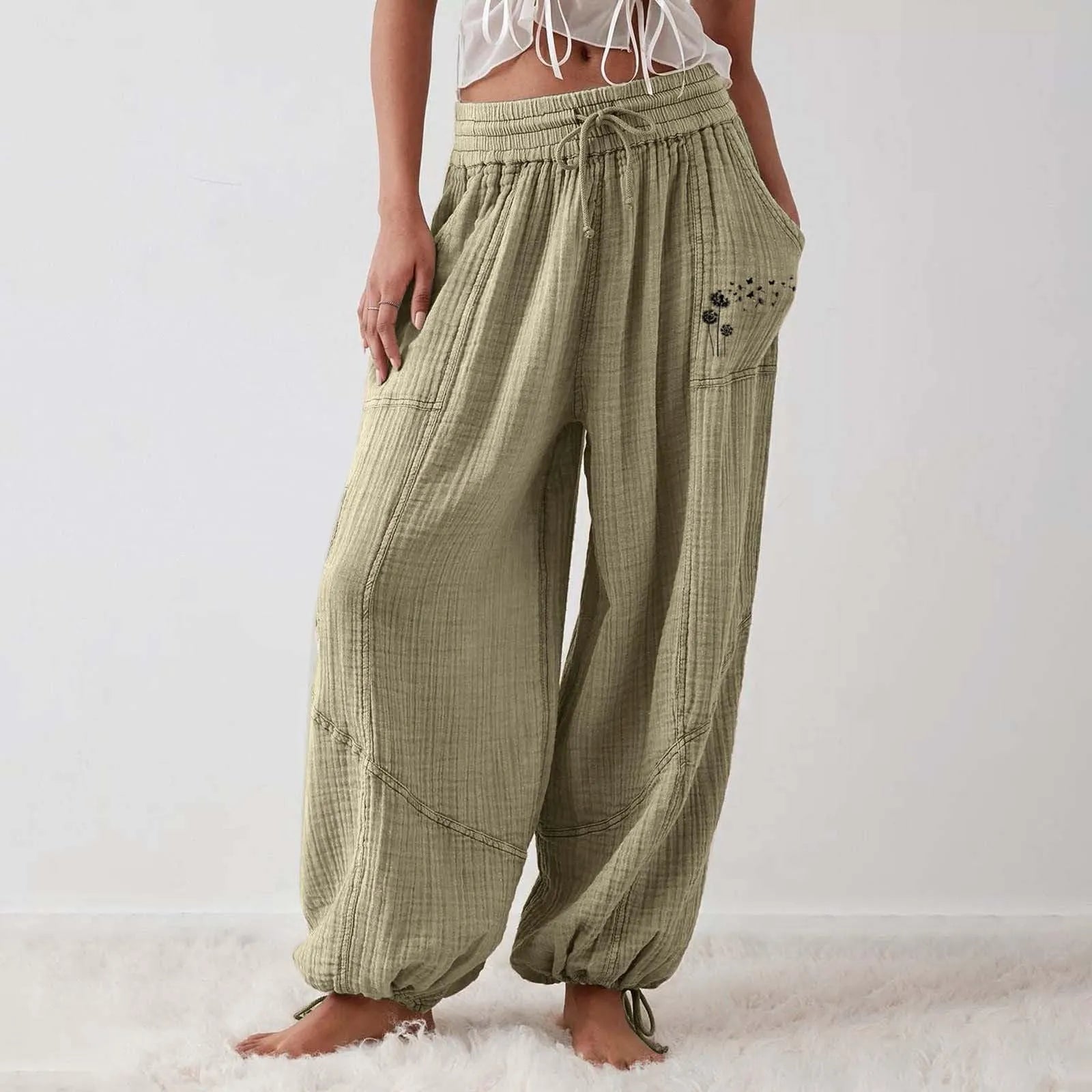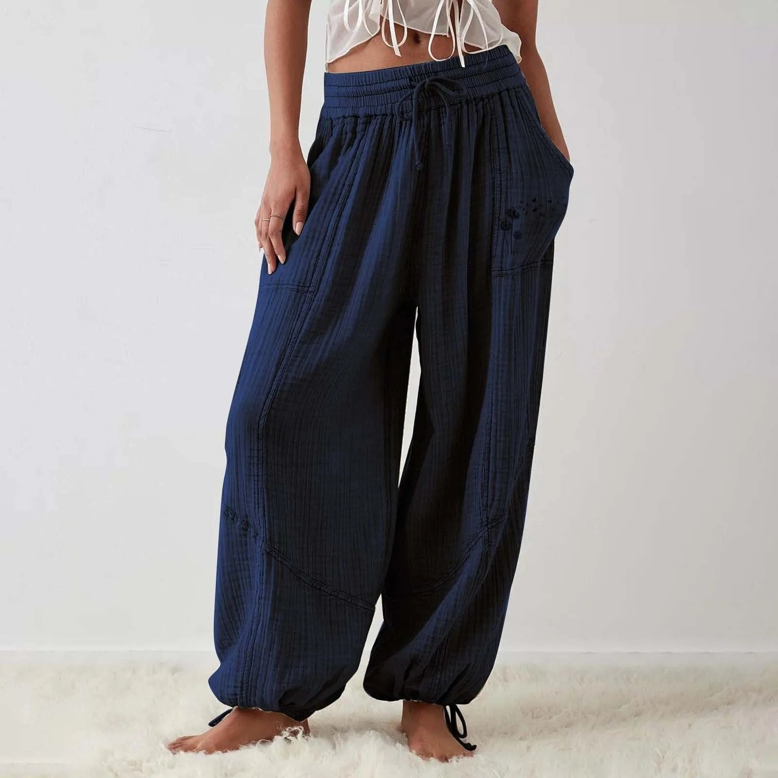 Women's Fashion Loose Solid Color Drawstring Elastic Waist Pocket Casual Pants