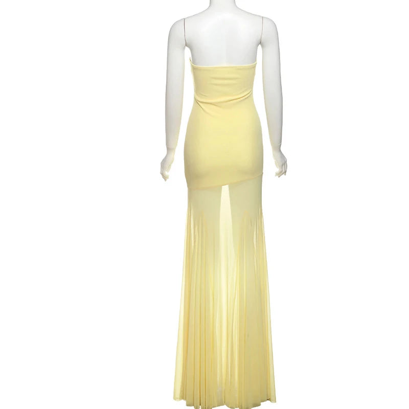 GETADME 2025 Summer Floor-length Mesh Hem Strapless Silm High Waist Fashion Slash Neck Ladies Maxi Dress Lady Party Holiday Party Gowns