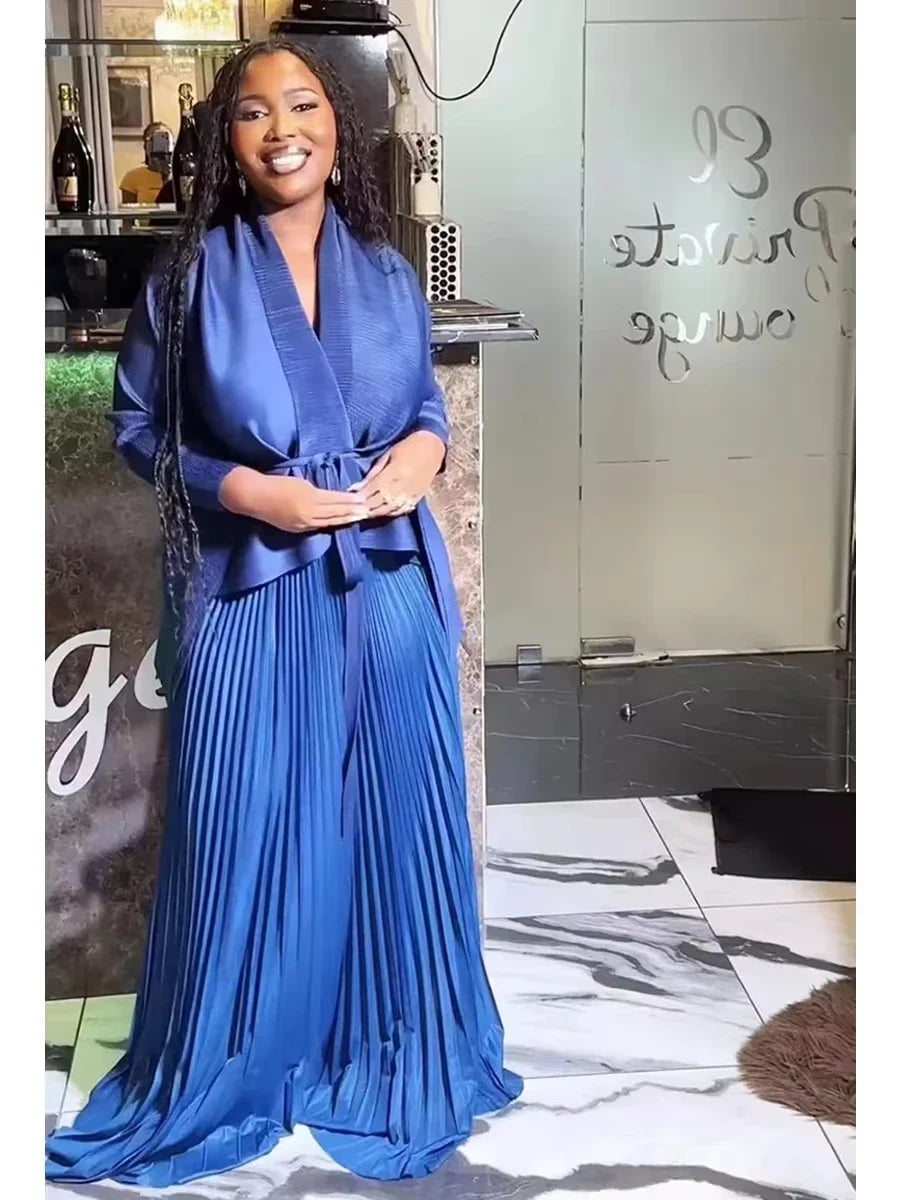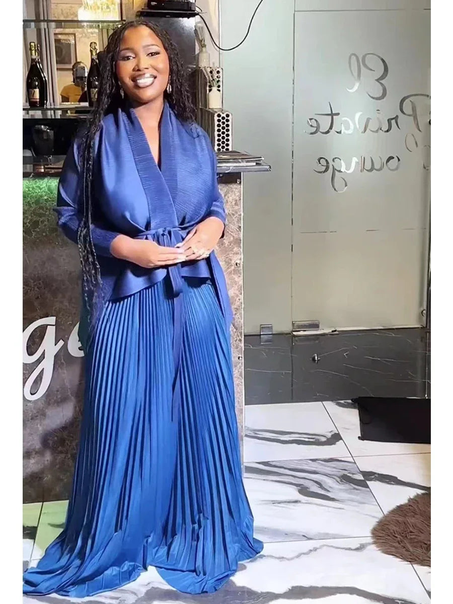 GETADME ANLAN Pleated Two Piece Sets 2025 New Lapel Belt Top&High Waist Folds A-line Skirt Wedding Evening Party Women's Clothing 9A2025