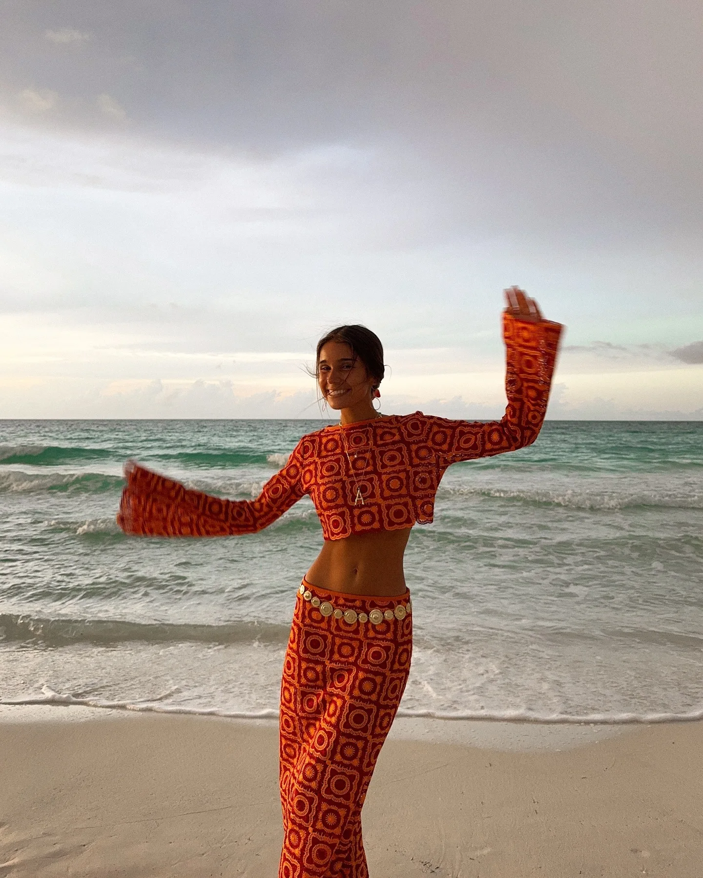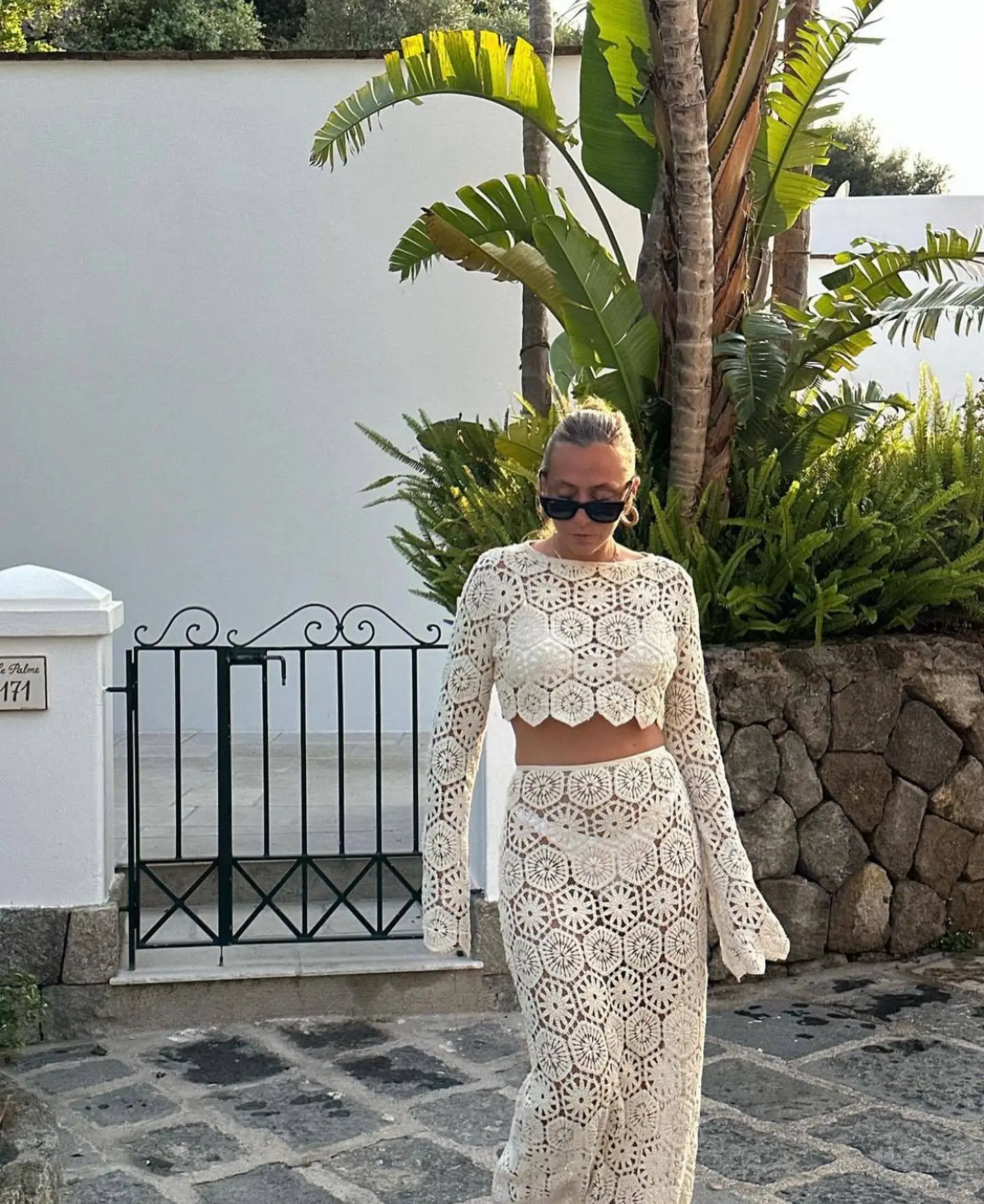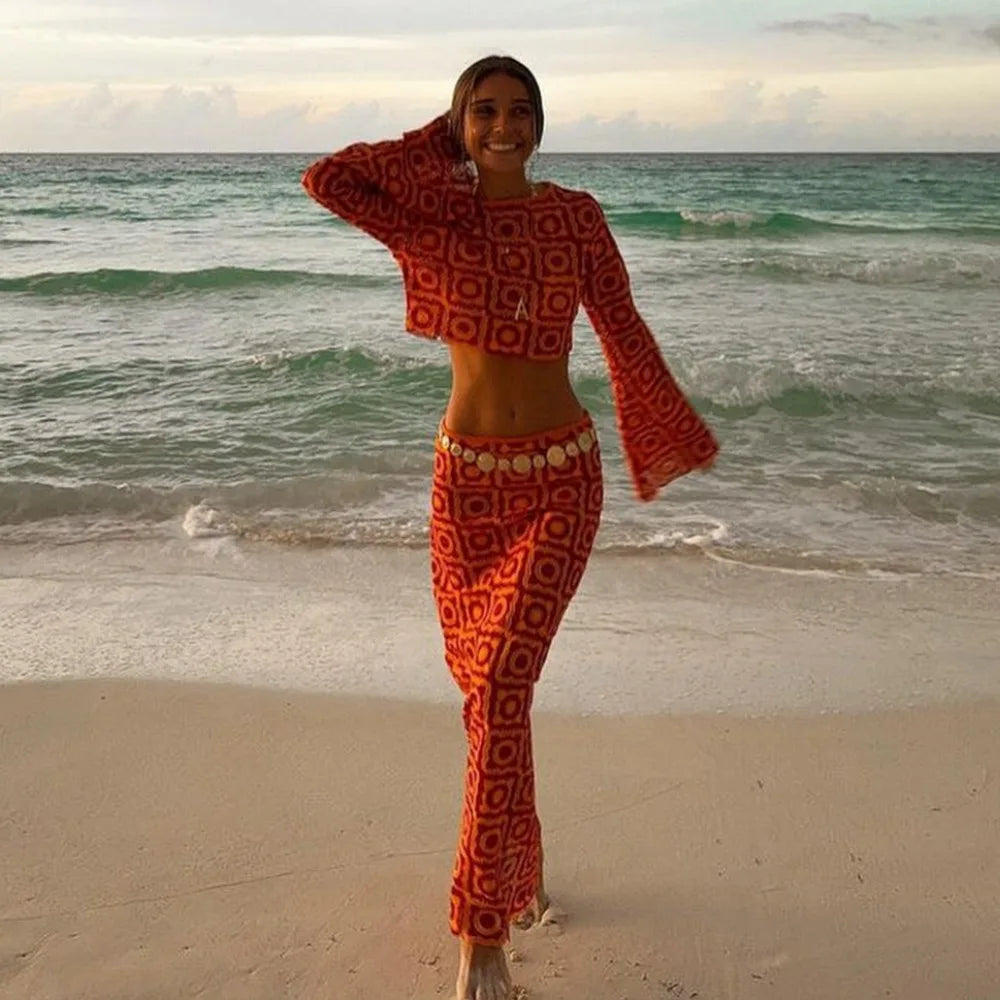 GETADME Black Beach Skirt Sets Women Sexy Hollow Out Slim Holiday Two Piece Set Autumn Long Sleeve Crop Top and Maxi Skirt Outfits 2025
