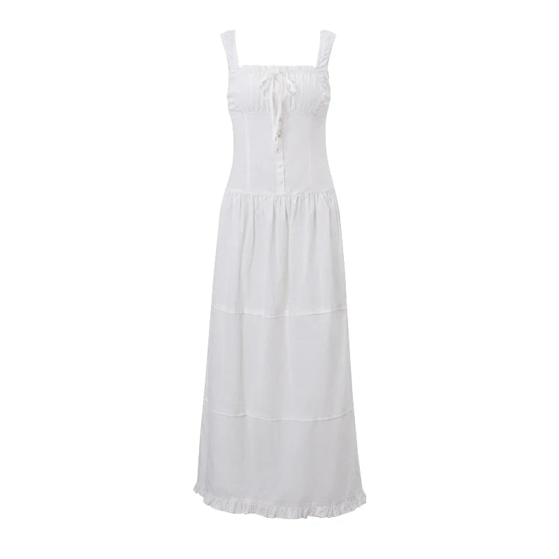 GETADME Candyhot Elegant Square-neck White Maxi Dress Casual Summer Slim Lace Up Sleeveless Dreses 2025 French Party Beachwear Vestidos