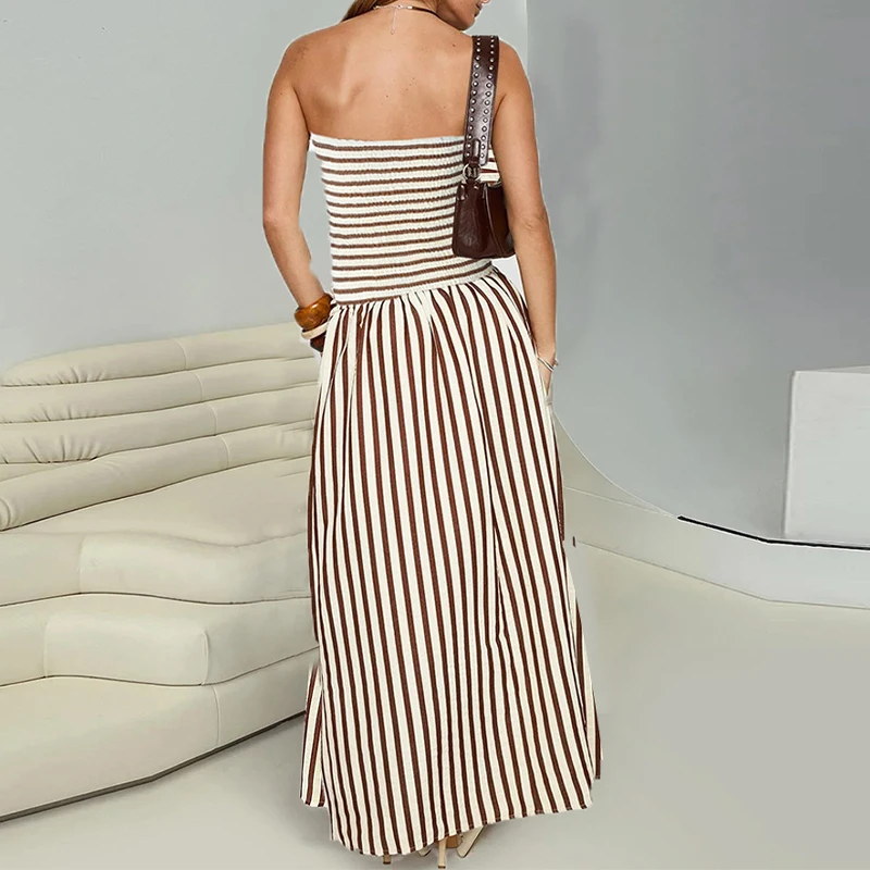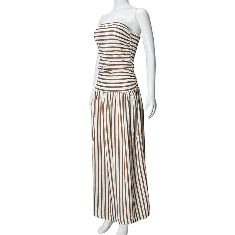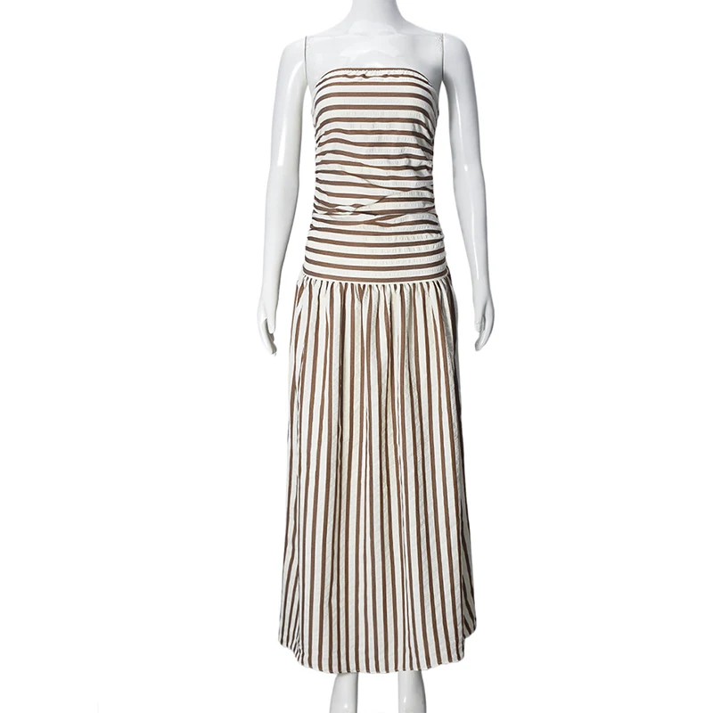 GETADME Casual Strapless Elastic Pleated A-line Maxi Dress Sleeveless Summer Bodycon Clubwear Elegant Party Comfortable 2025 Dresses