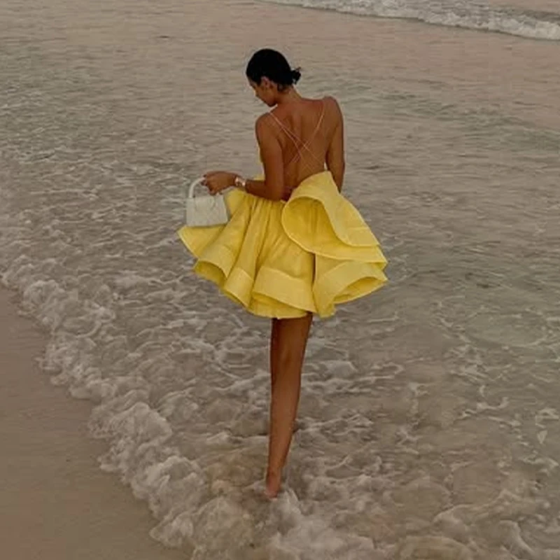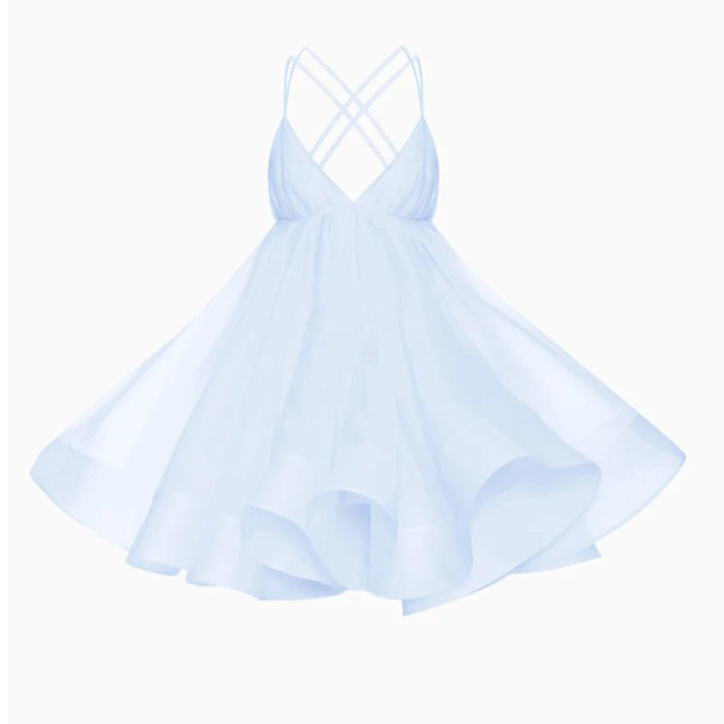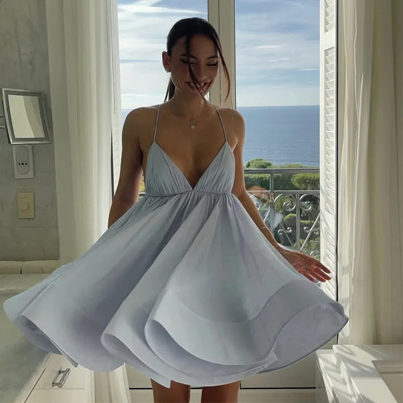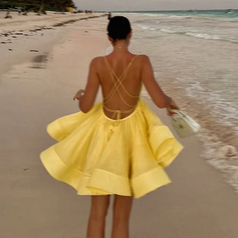 GETADME Fashion Backless A Line Mini Dresses for Women Chic Female Sleeveless Big Swing Party Dress 2025 New Lady V Neck Beach Vestidos