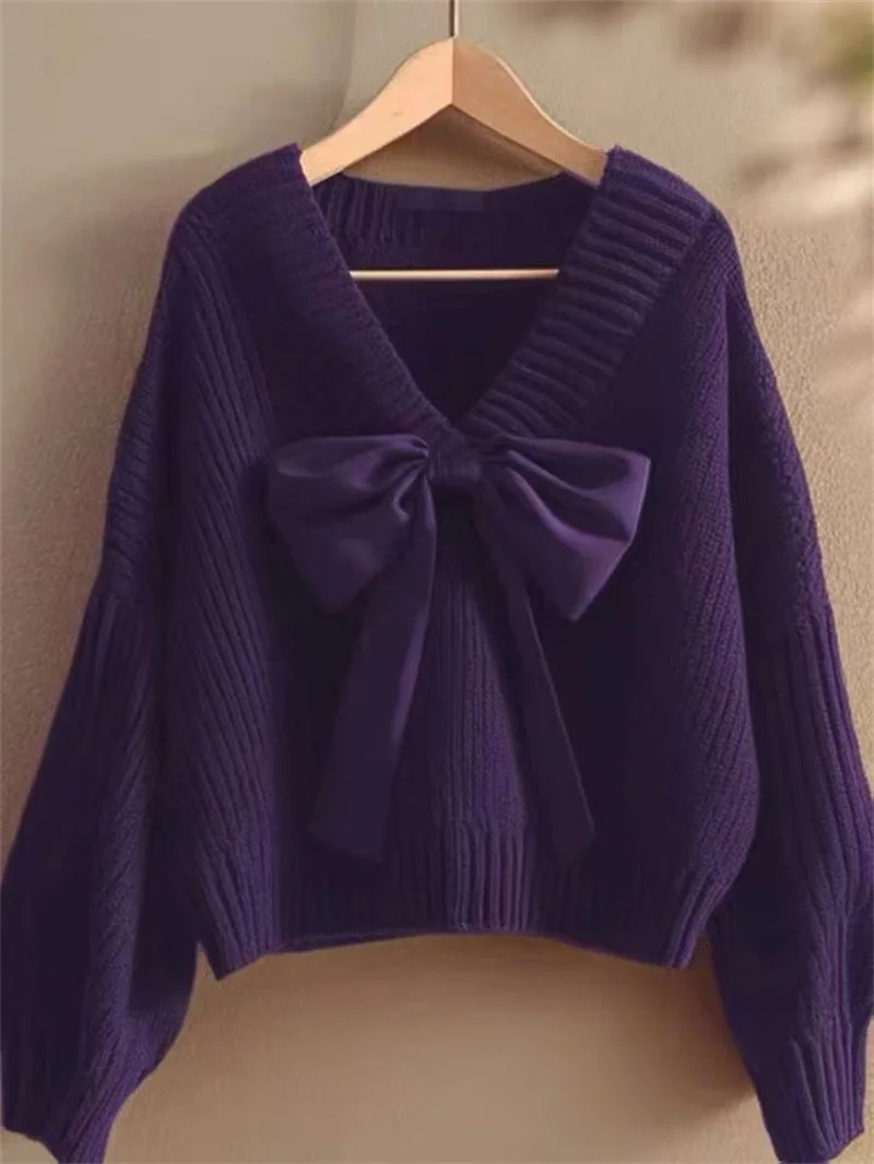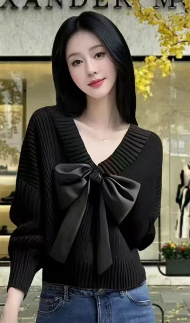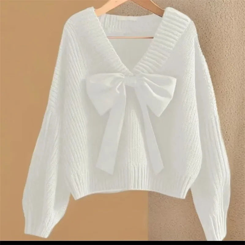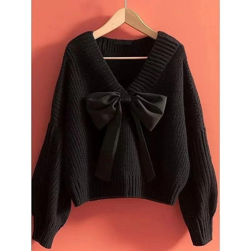 GETADME Fashion Bow Design Knitted Sweater NEW 2025 Spring Autumn Winter Women's Knitwear Top Korean Style Versatile Pullover Shirt