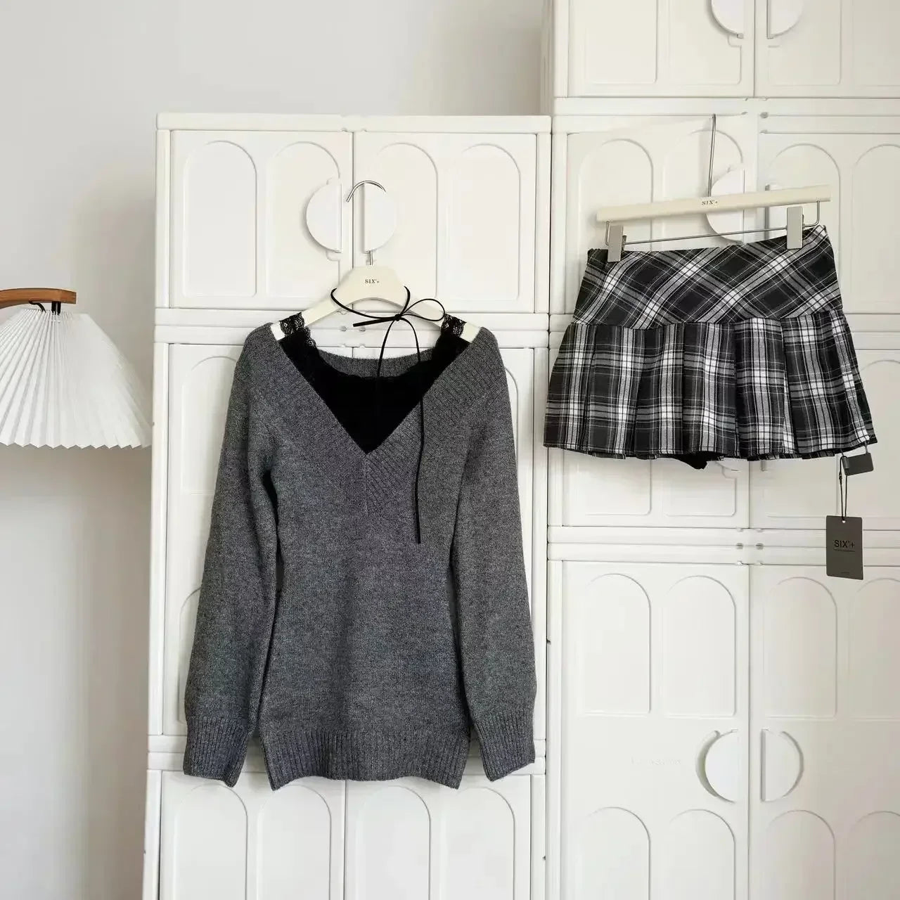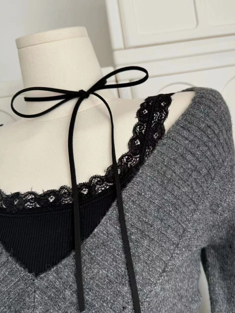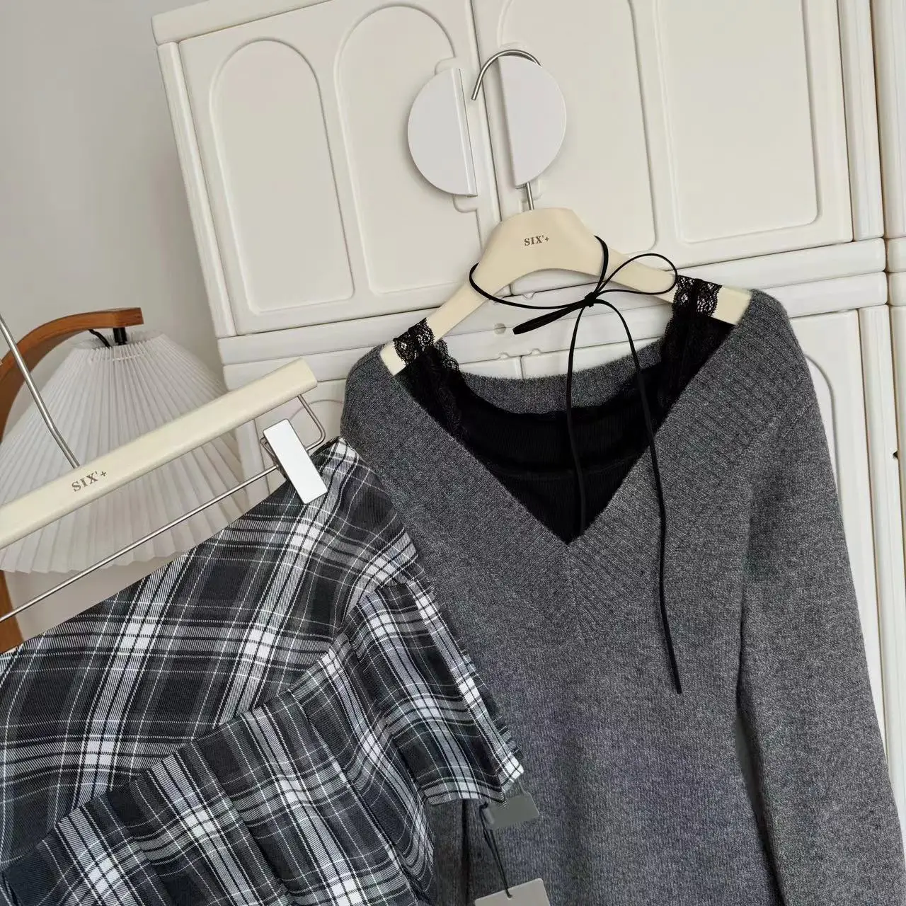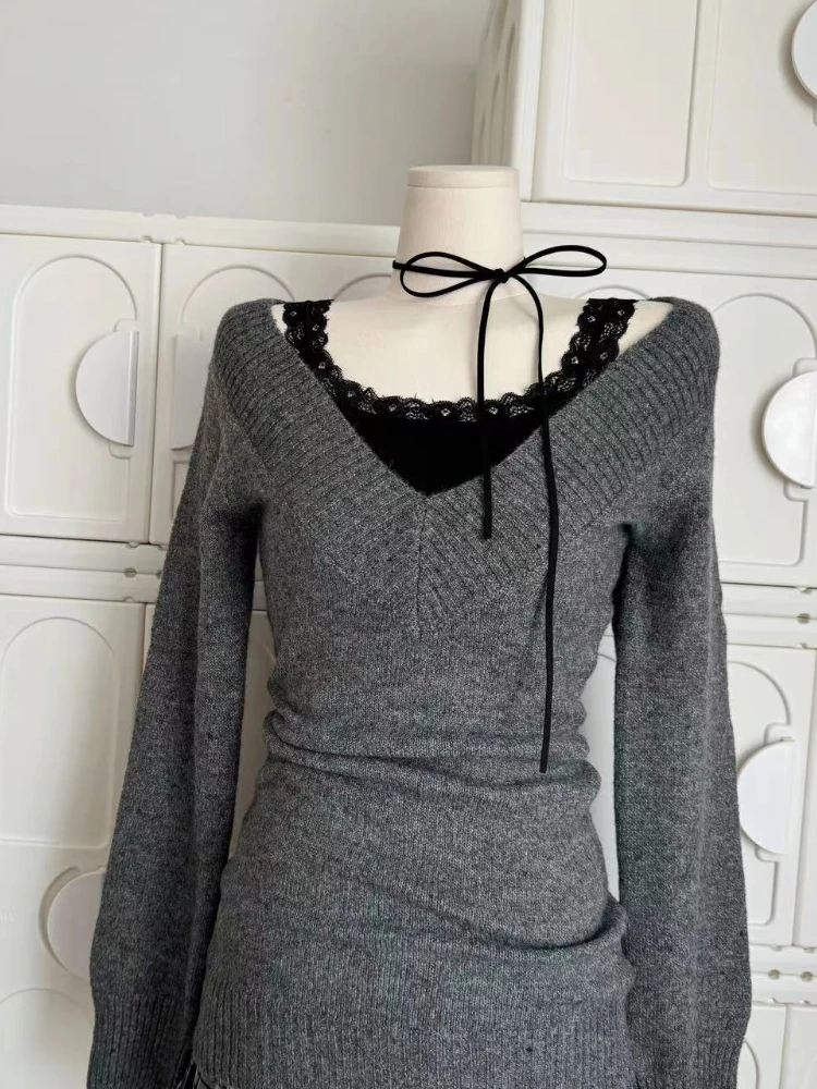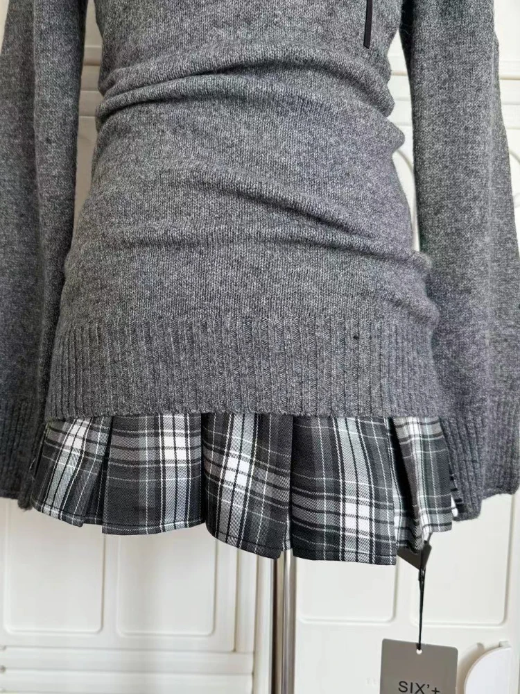 GETADME French Retro Elegant Y2k 3 Piece Sets Women Vintage Solid Long Sleeve Sweater + Lace Casual Vest + Plaid Chic Skirt Autumn 2025
