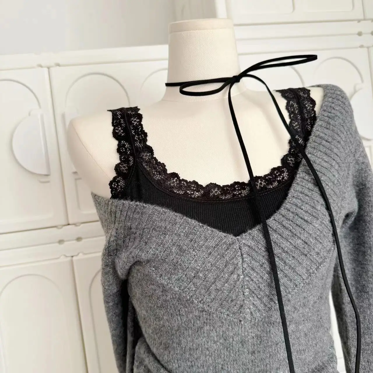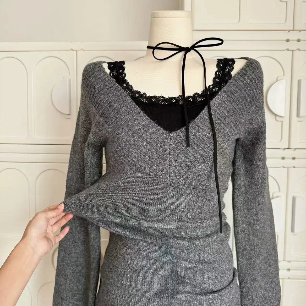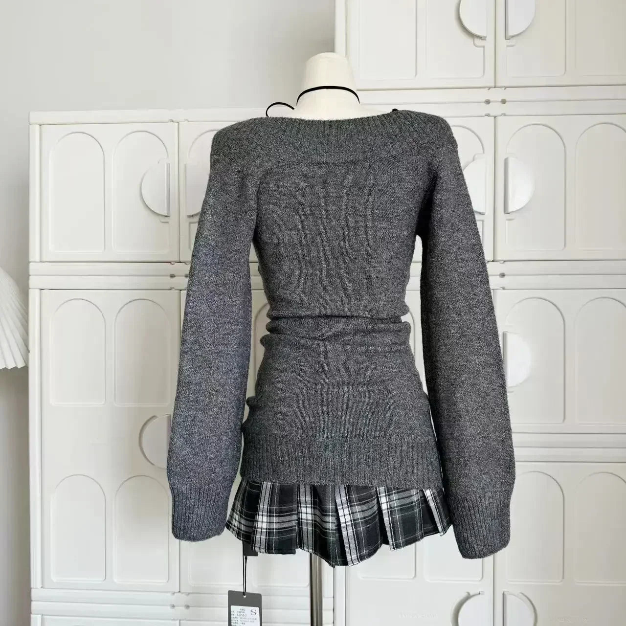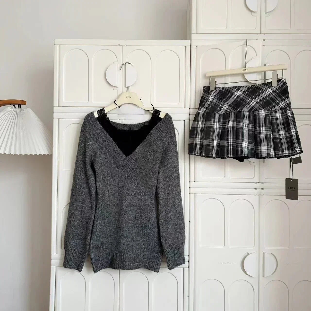 GETADME French Retro Elegant Y2k 3 Piece Sets Women Vintage Solid Long Sleeve Sweater + Lace Casual Vest + Plaid Chic Skirt Autumn 2025
