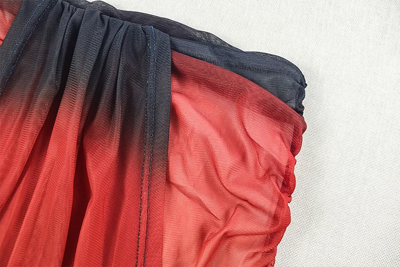 GETADME Hot Sexy Gradient Printing Halter Backless Swinging Collar Backless Crop Top+Ruched Mesh Skirts Two Piece Vacation Sets 2025