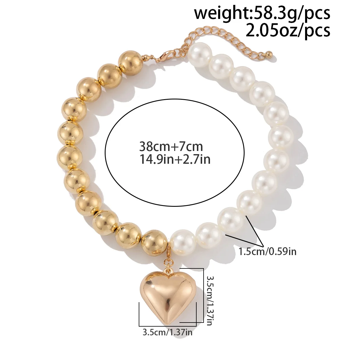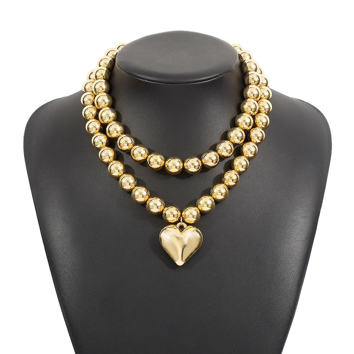GETADME Big CCB Ball Beaded Chain Heart Pendant Necklace for Women Trendy Choker Collar Neck Accessories 2025 Fashion Jewelry