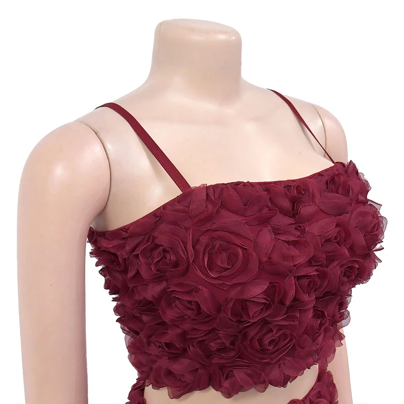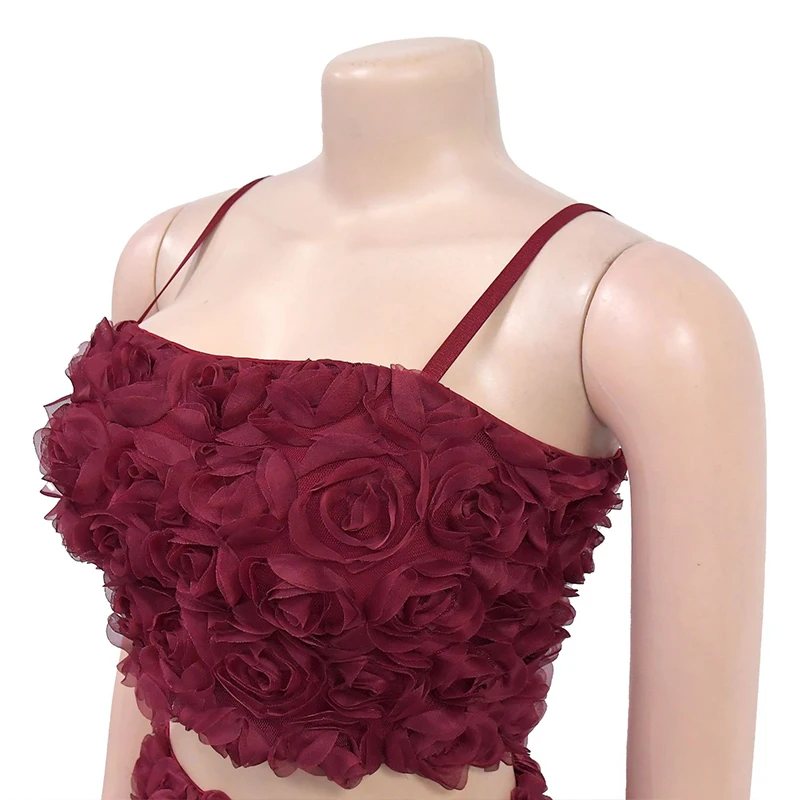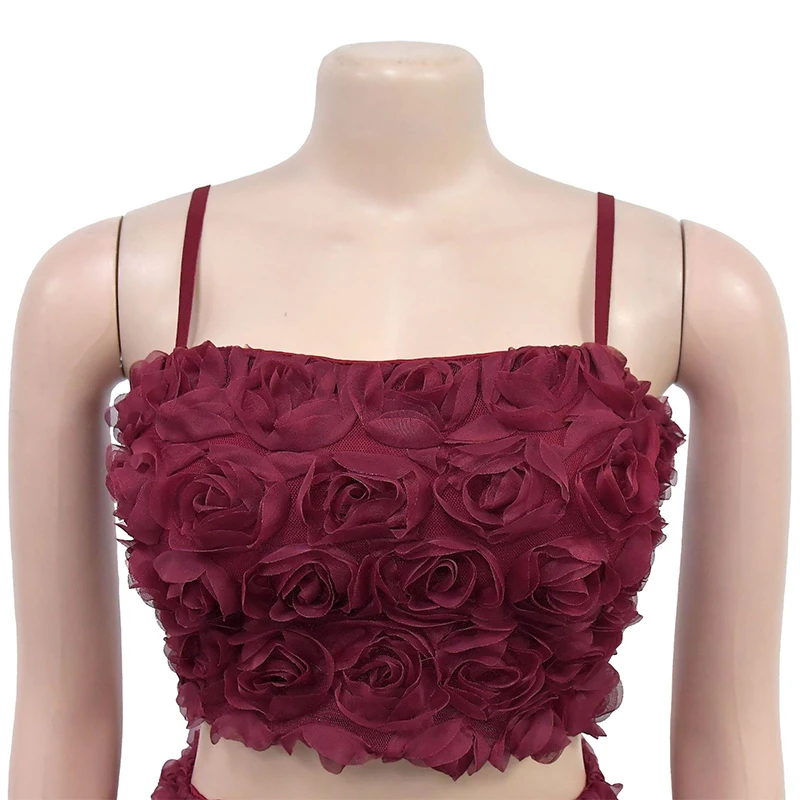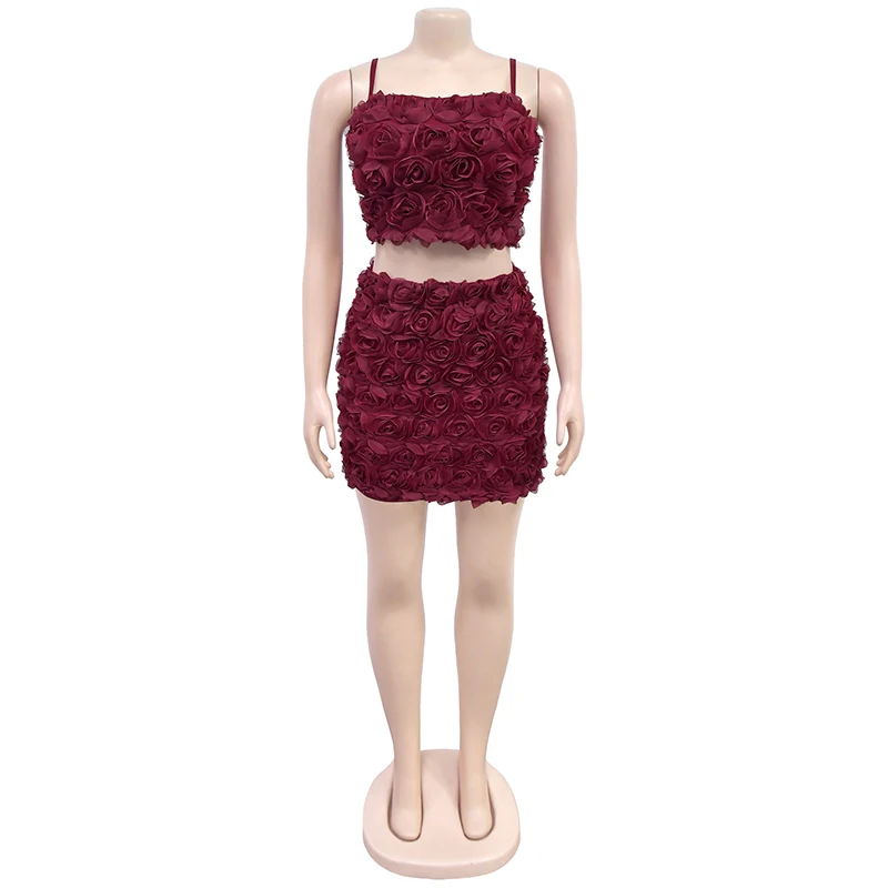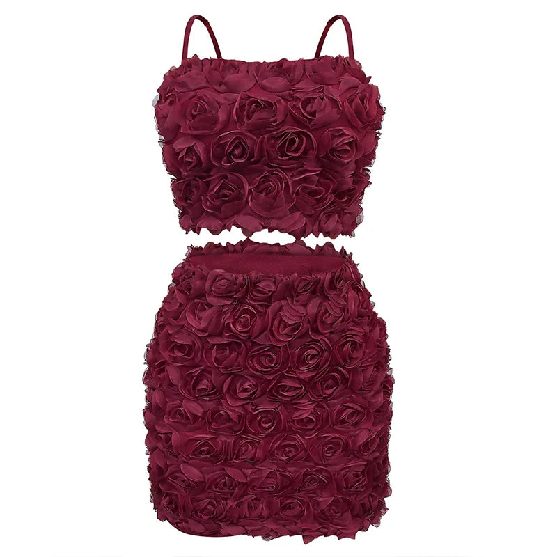 GETADME New Fashion Flower Solid Vintage Party Spaghetti Strap Zip Up Crop Top and Mini Skirts Two Pieces Sets Sexy Women Outfits 2025