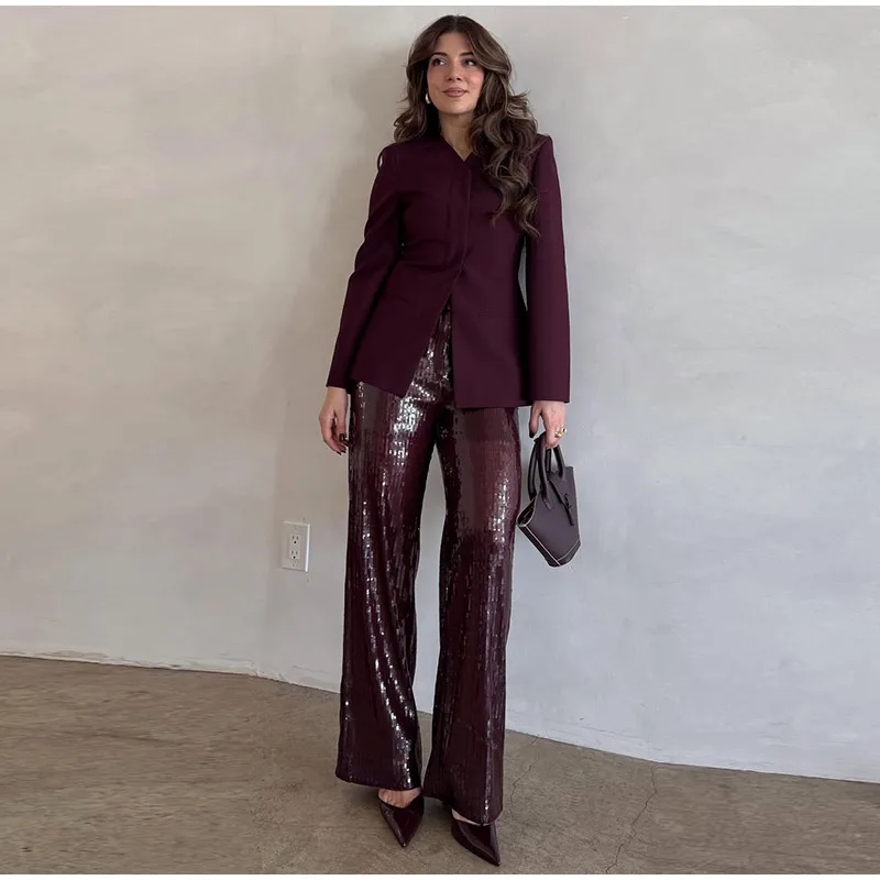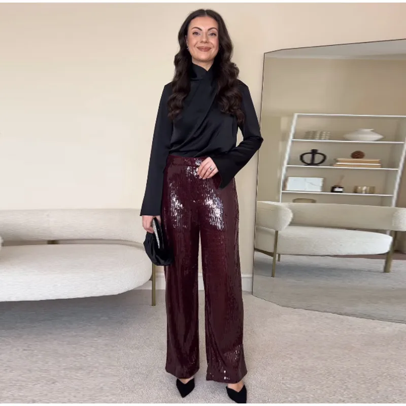 GETADME New Y2K Sequins Long Pants For Women 2025 Fashion High Waist Wide Leg Straight Trouser Lady High Street Party Shining Pants