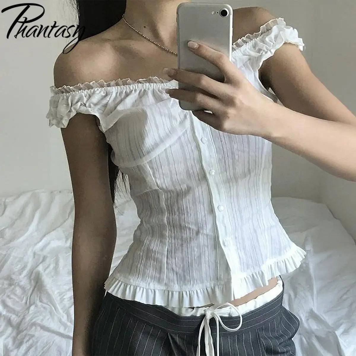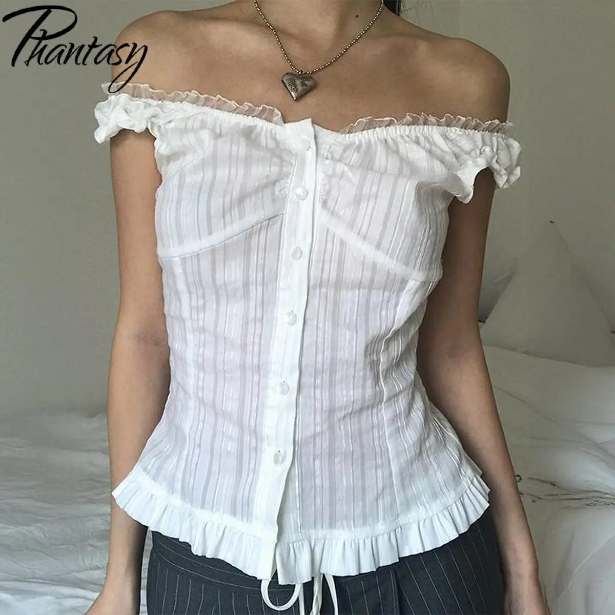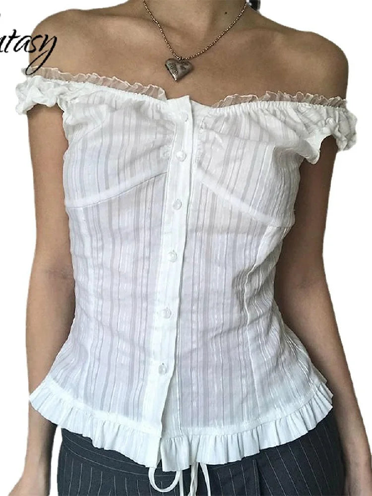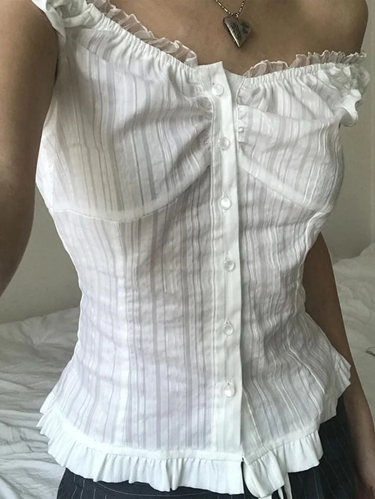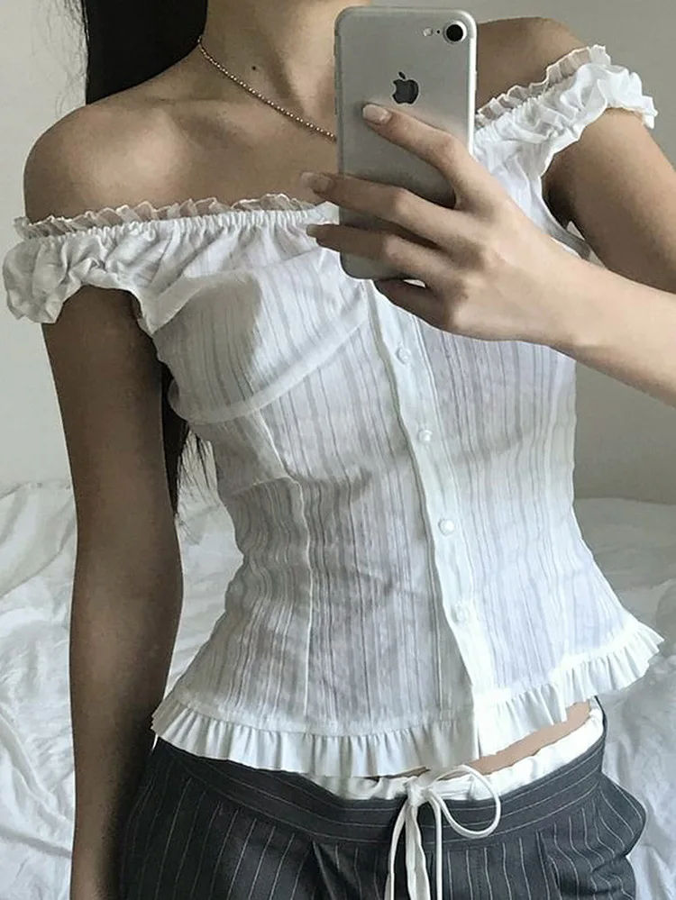 GETADME Phantasy Y2K Women Tops White Lace T-Shirt Button Tees Vintage French Style Tops 2025 Spring Summer Tops Female Streetwear