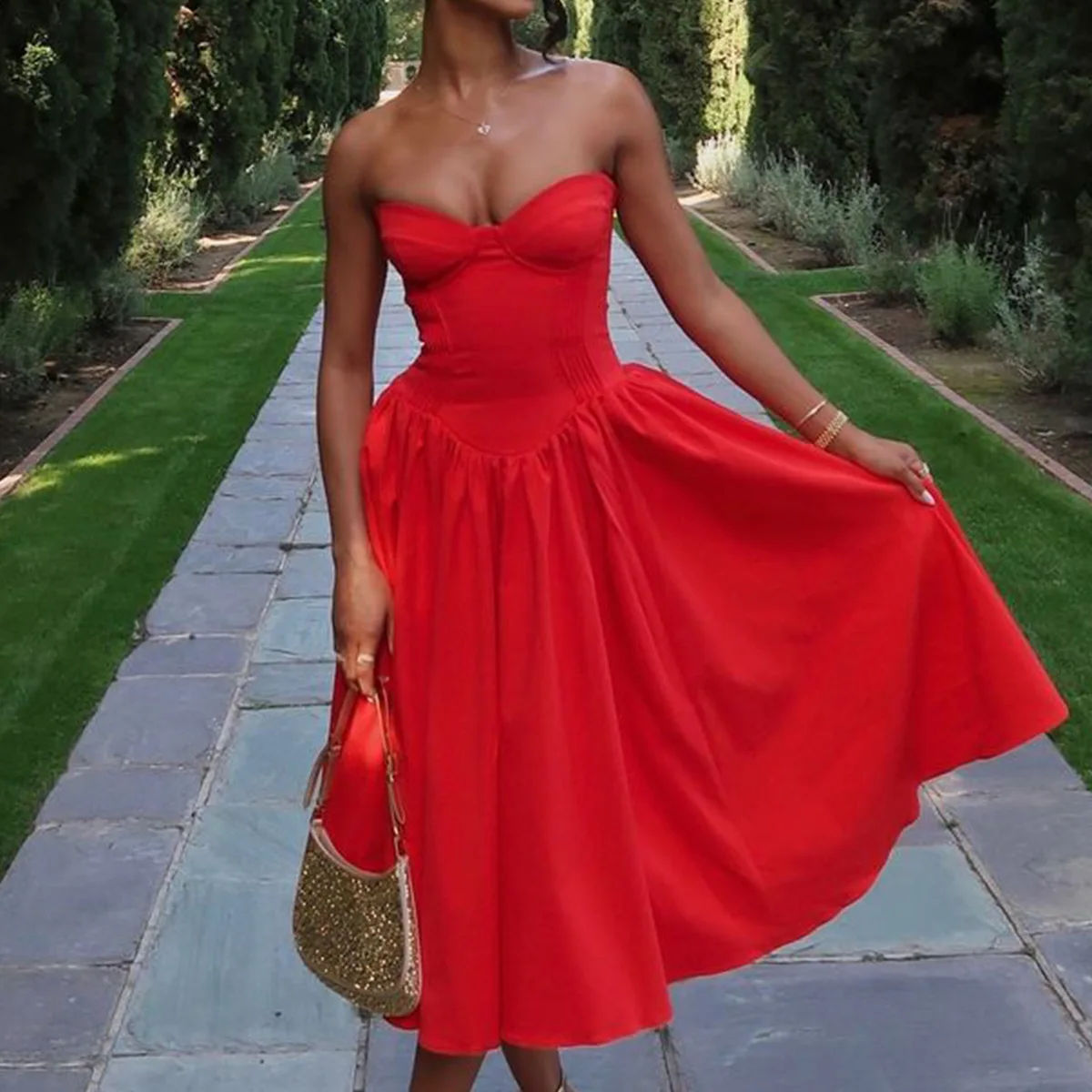 GETADME Suninheart Women Red Strapless Dress Sexy 2025 New Arrivals Midi Casual Holiday Birthday Party Dresses Female