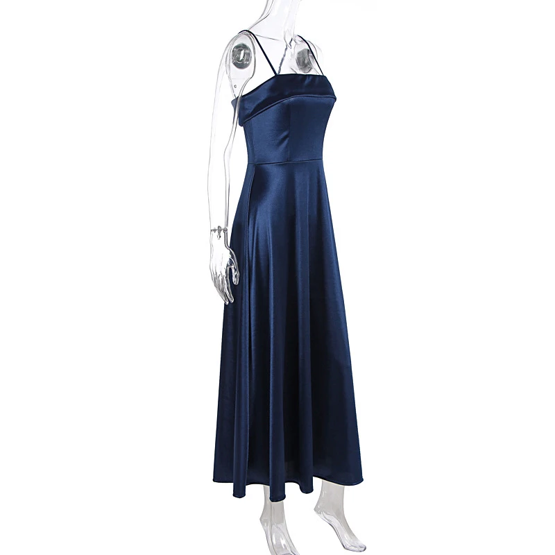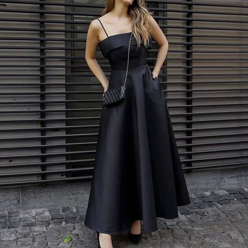 GETADME Vintage French Style Spaghetti Strap Solid A-line Satin High Waist Party Maxi Dresses Evening Party Fashion Vestidos 2025