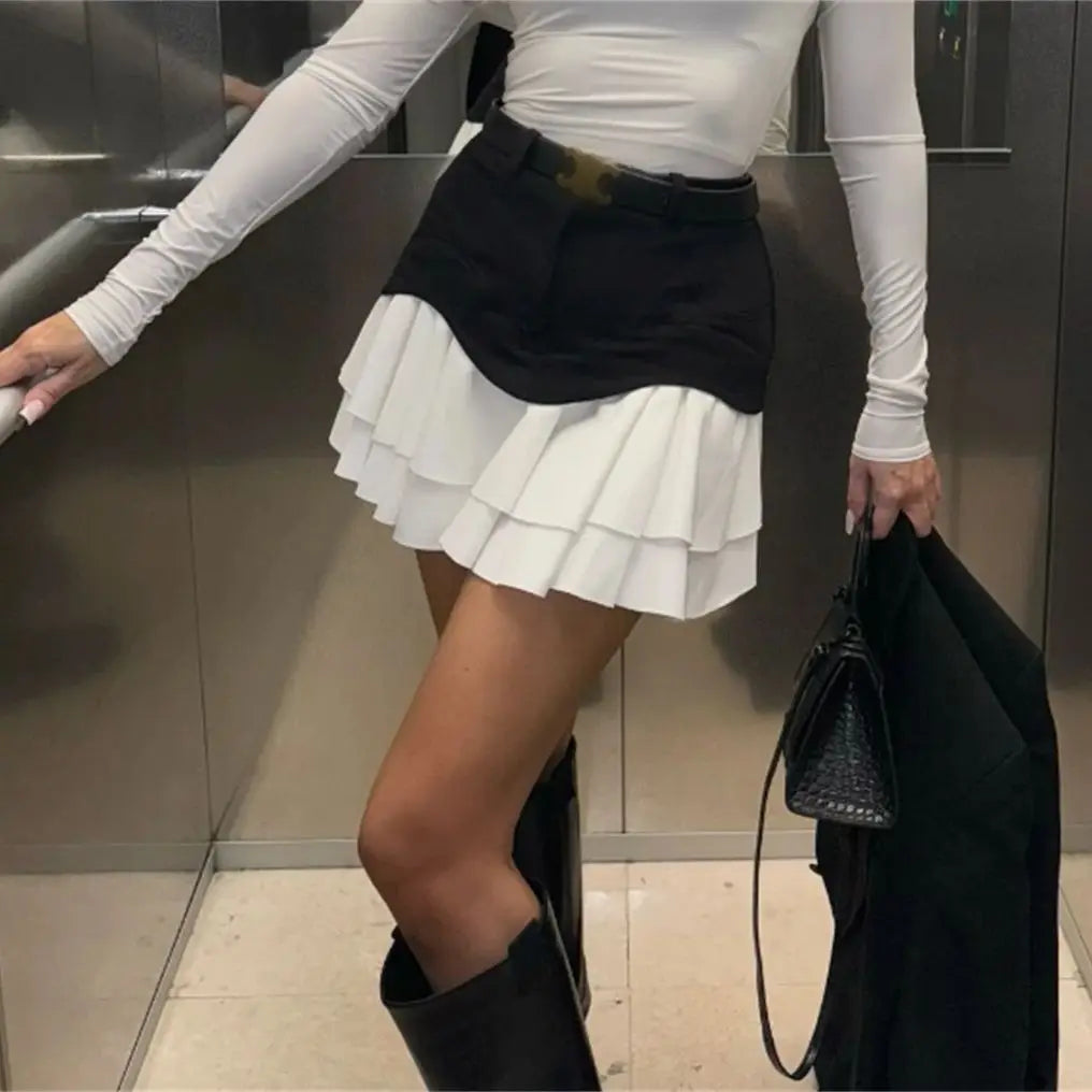 GETADME Women Fashion Ruffled Cake Dress High Waist A Line Petchwork Mini Skirt 2025 Spring Summer New In Y2K Skirts Lady Street Party
