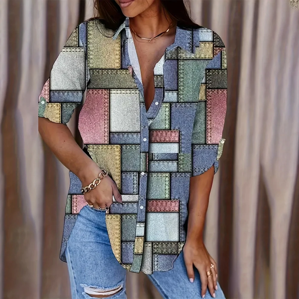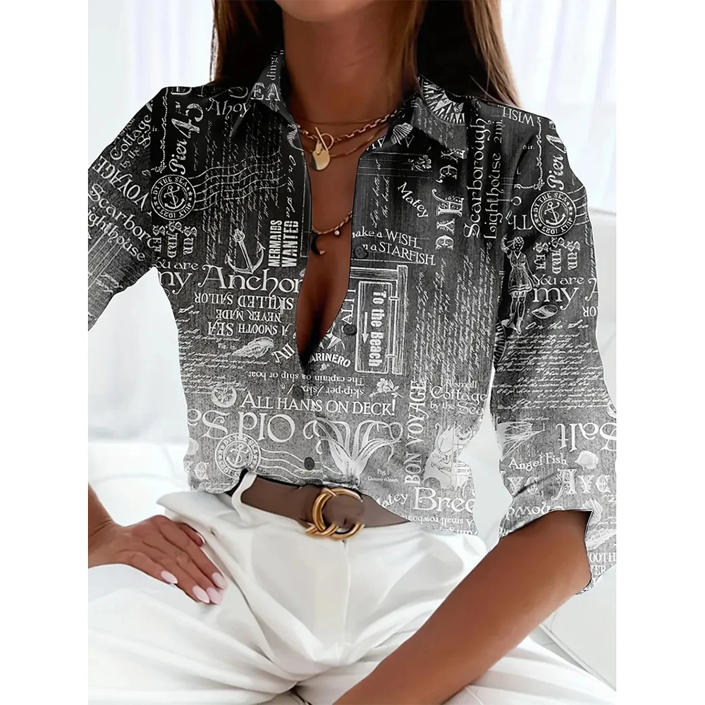 GETADME Autumn & Spring Long Sleeve Shirts For Women Elegant 3d Horse Printed Single-Breasted Lapel Tops 2024 New Button Basic Shirts