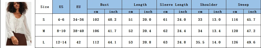 SLength: 51Bust: 102Sleeve: 61Shoulder: 33