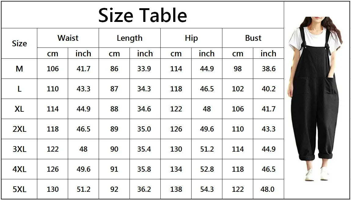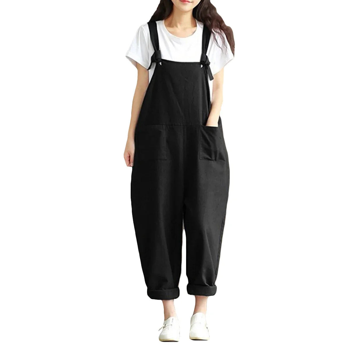 Fashion Women Casual Loose Solid Jumpsuit Spring Strap Dungaree Harem Trousers with Pockets Overalls Plus Size 5XL