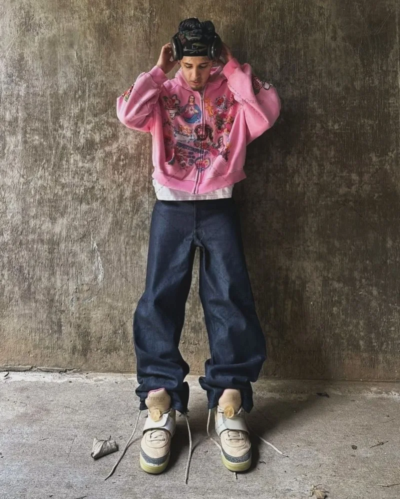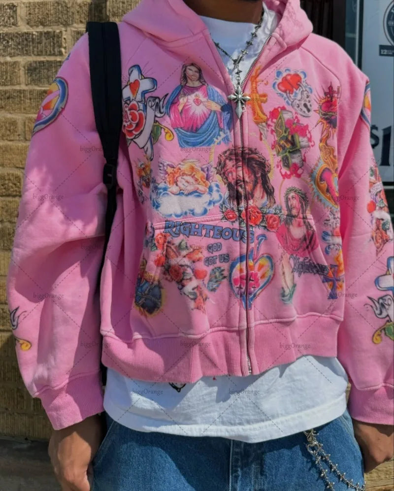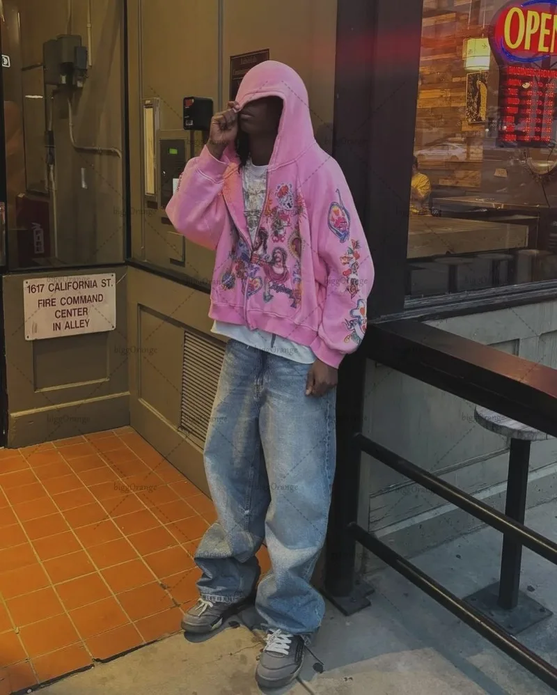 Sweat à capuche oversize zippé Getadme Y2K Harajuku rétro style streetwear américain imprimé croisé, veste sweat-shirt tendance et décontractée.