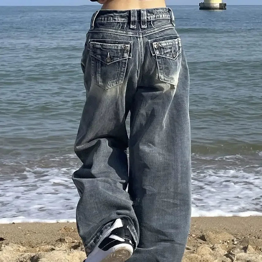 Getadme 2025 아메리칸 레트로 진 Y2K 빅 패턴 바지 루즈 진 고딕 하이웨이스트 와이드 팬츠 스트리트웨어 바지