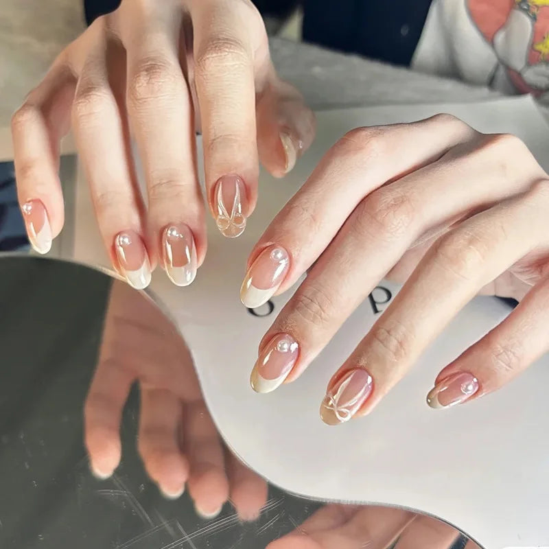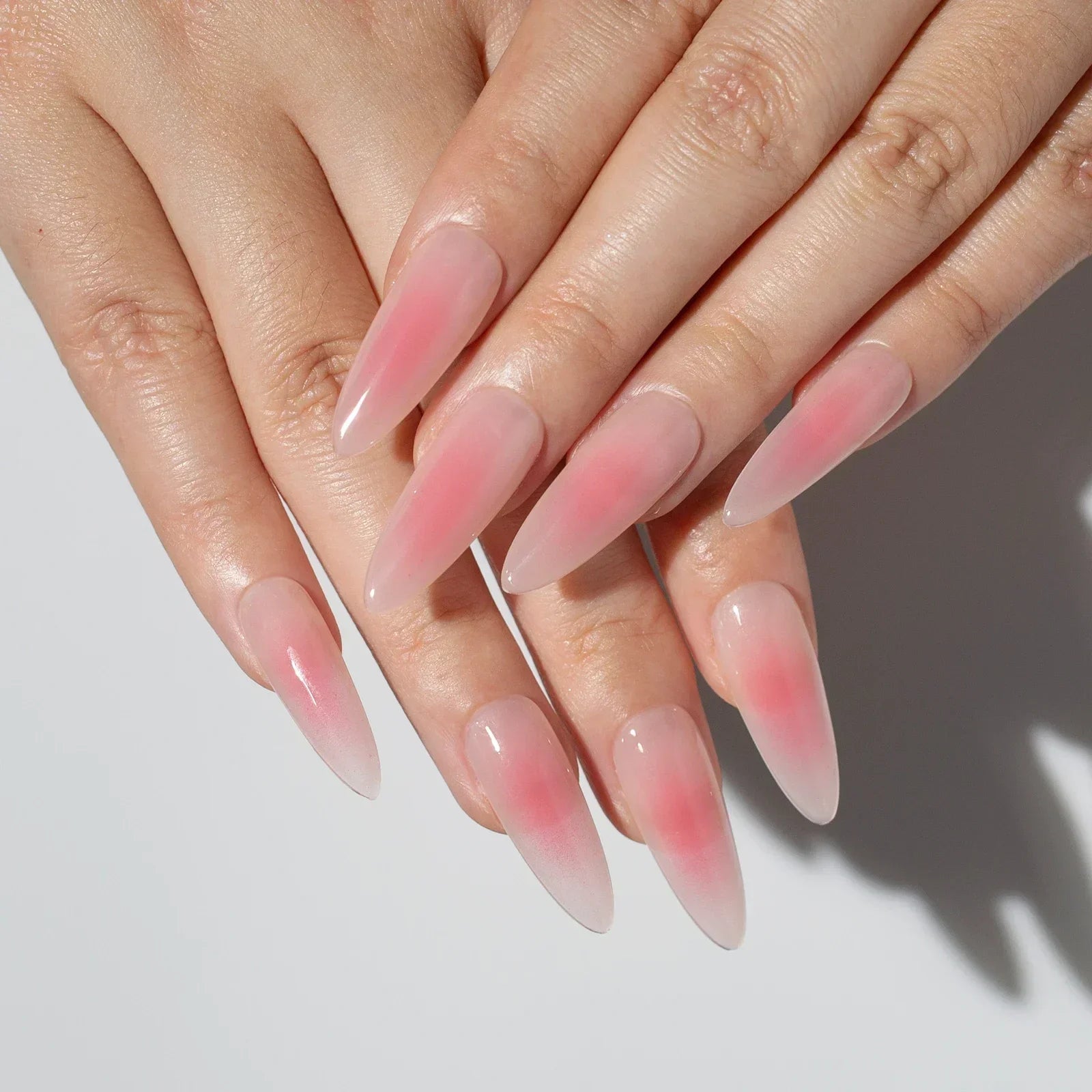 GETADME 10개입 누드 컬러 핸드메이드 프레스온 네일 풀 커버 점진적 변화 크리스털 클리어 프렌치 아몬드 가짜 네일 매니큐어 네일 팁