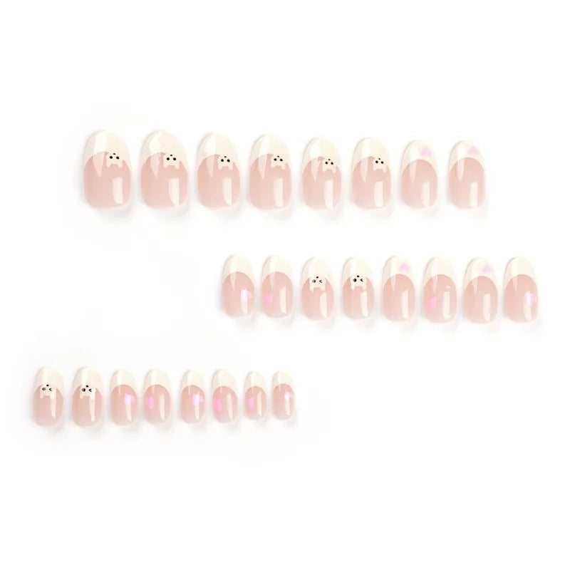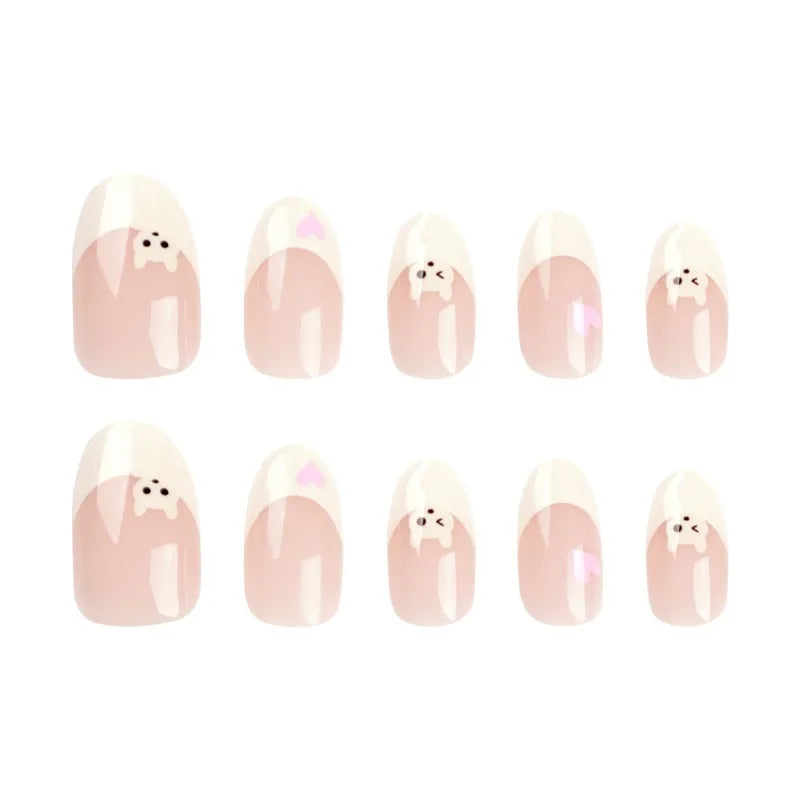 GETADME 24개입 저렴한 러브 웨어 네일 아몬드 미디엄 프레스온 네일 귀여운 탈부착 베이지 롱 가짜 손톱 여름용 한국식 탈부착 네일 아트