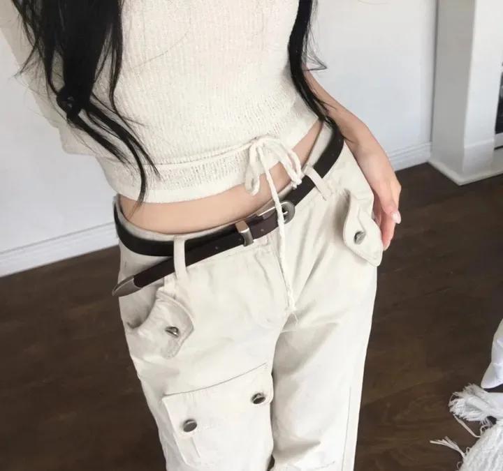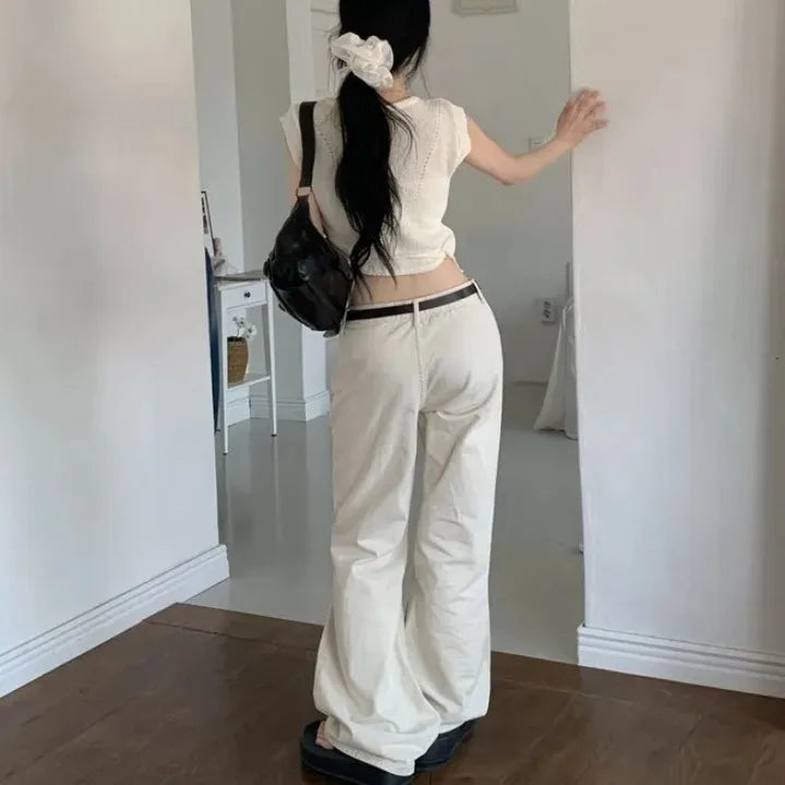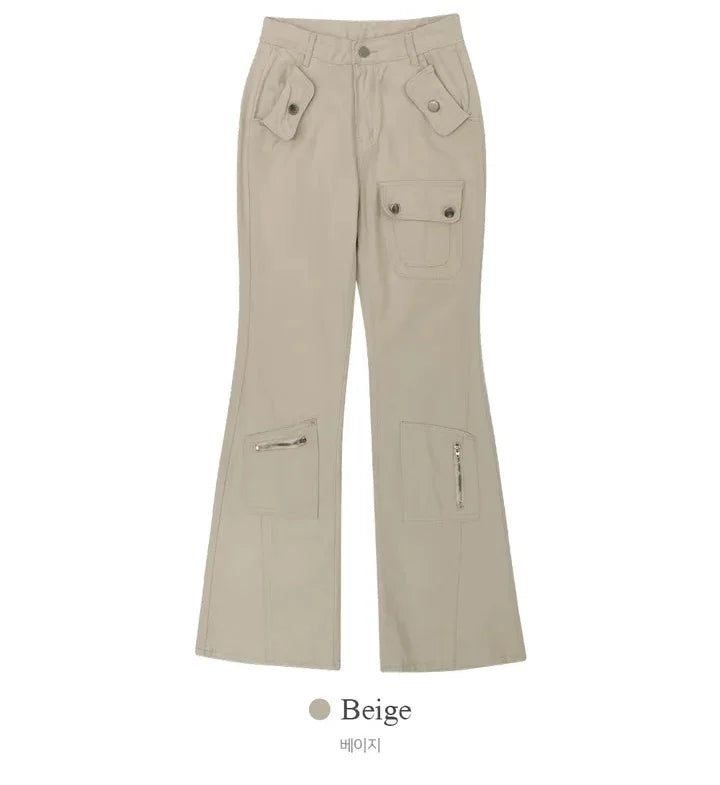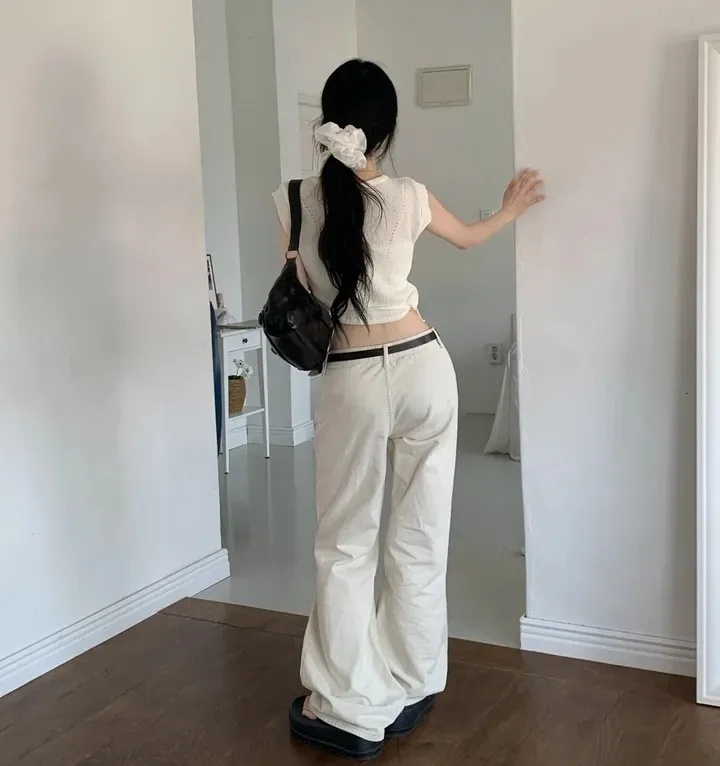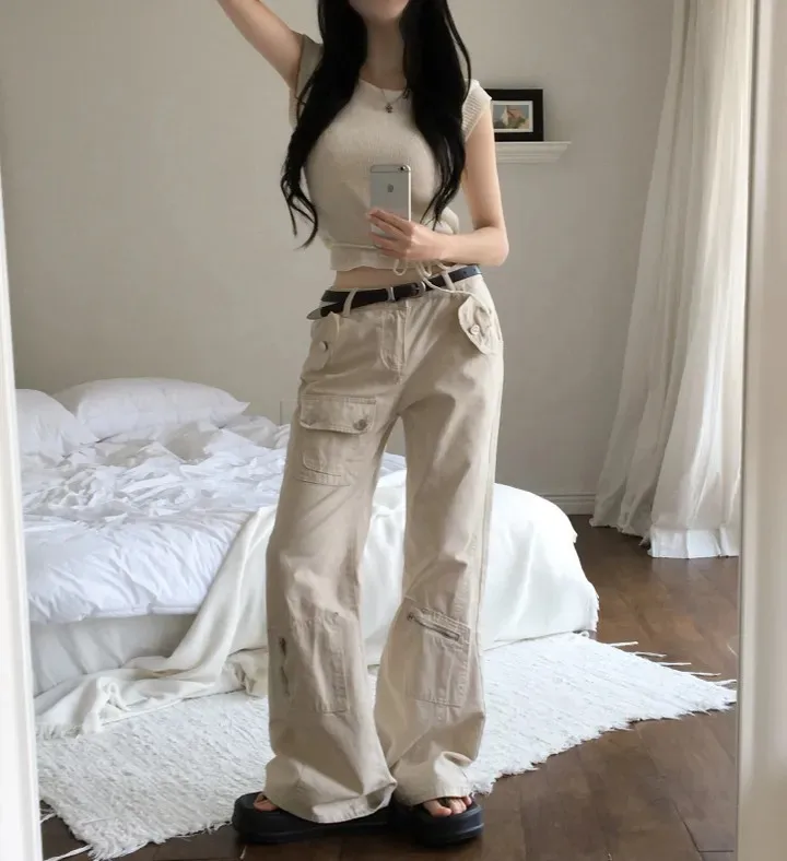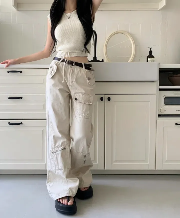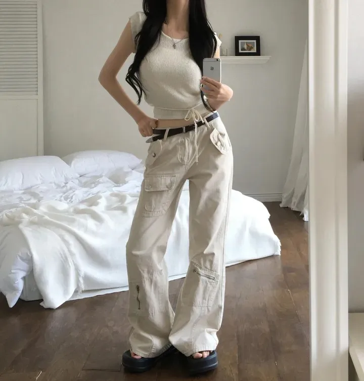 GETADME 시크 하이웨이스트 와이드 레그 카고 팬츠 여성용 스트레이트 컷 롱 진 멀티플 킷 아메리칸 스트리트 슬레 레트로 디자인