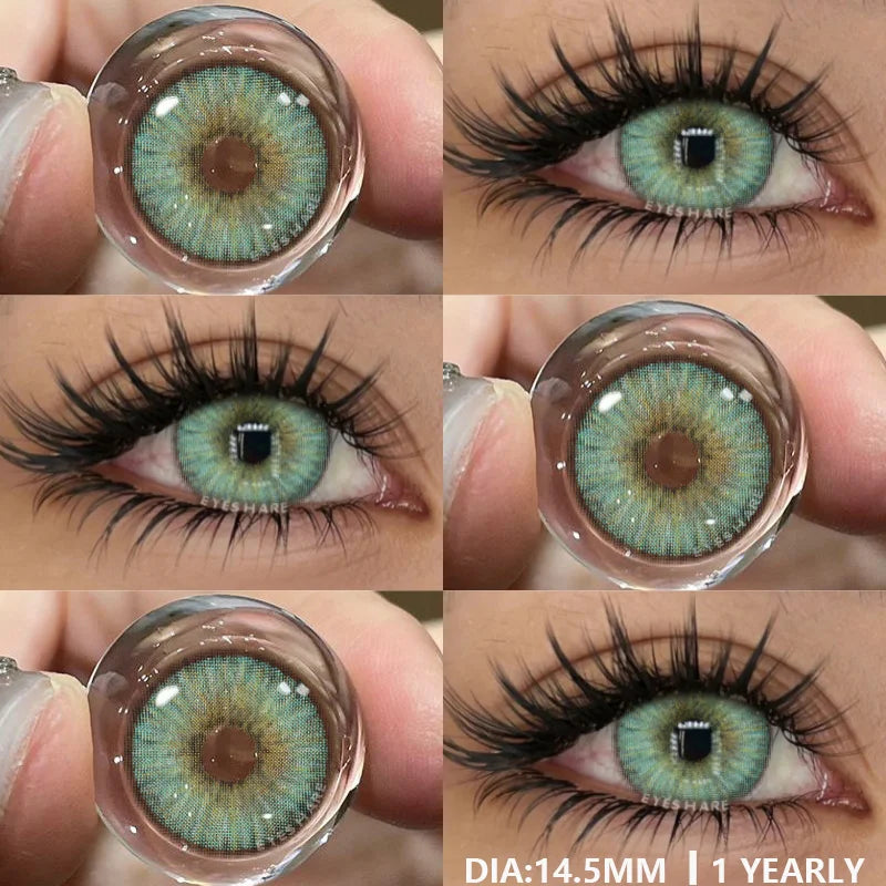 GETADME EYESHARE Lentes de Contato Coloridas para Olhos, Lente Cinza Pupilas, Lentes Azuis, Lente Marrom, Verde Anual, Cosmético, 1 Par