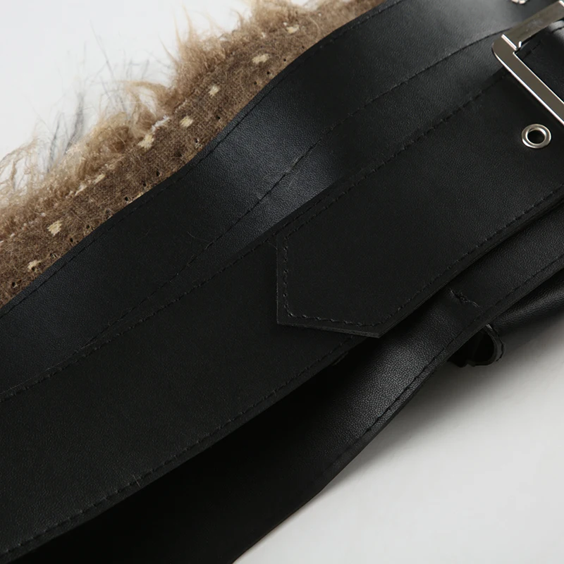 GETADME 패션 트렌디 신상 인조 모피 스플라이스 가죽 PU 백 벨트 여성 디자인 시크 갸루 Y2K 레트로 불규칙 허리 벨트