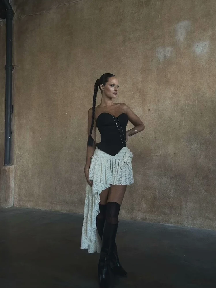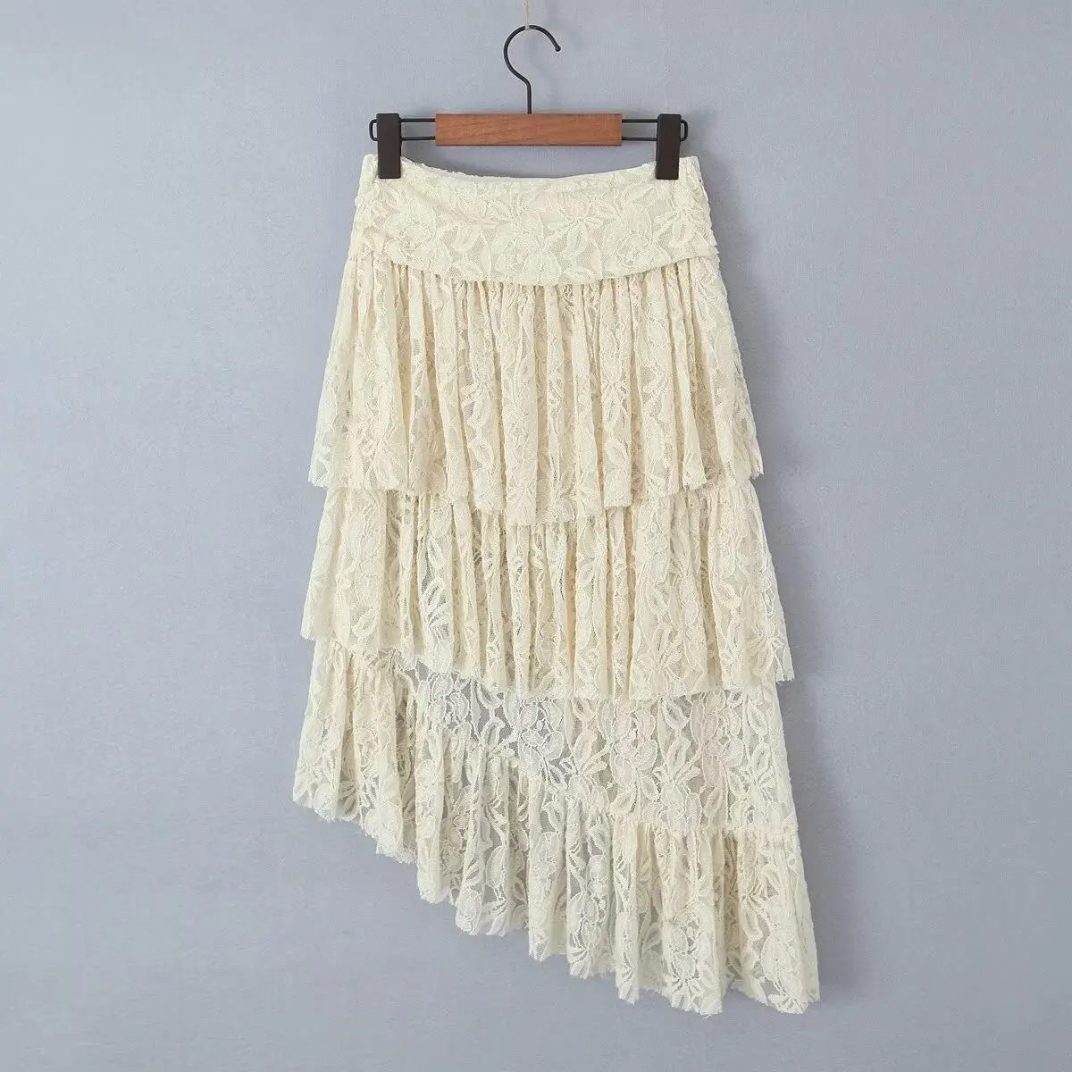 GETADME GypsyLady 레이스 시크 비대칭 스커트 우아한 보헤미안 베이지 여름 여성 롱 스커트 메시 시스루 섹시 러플 여성 스커트 팔다