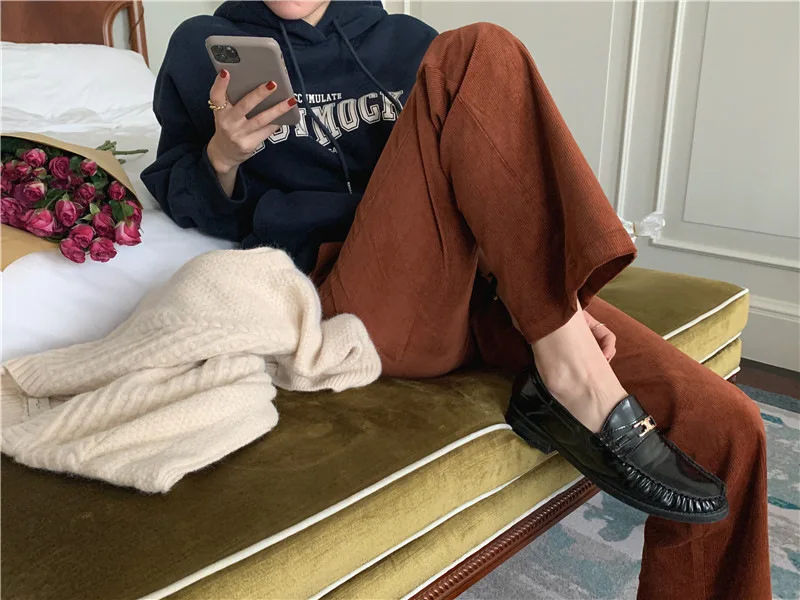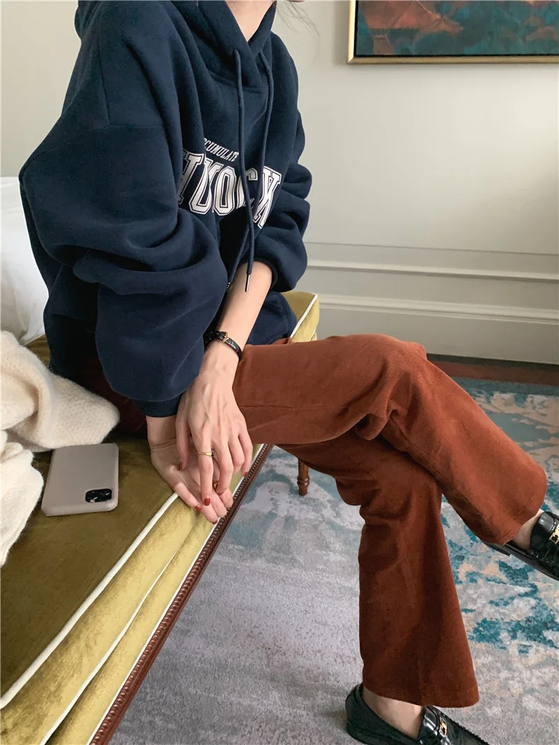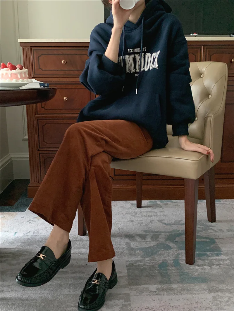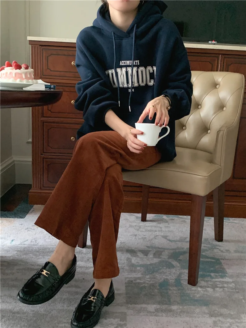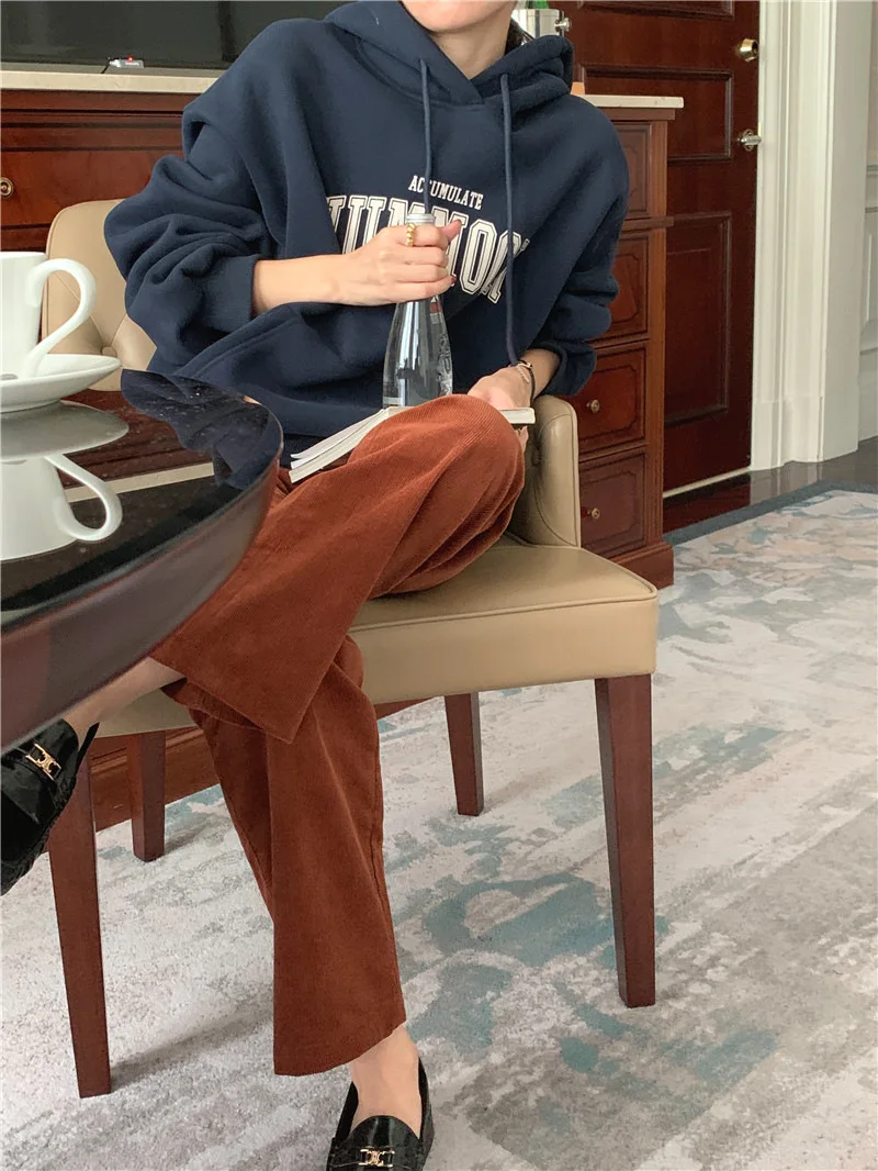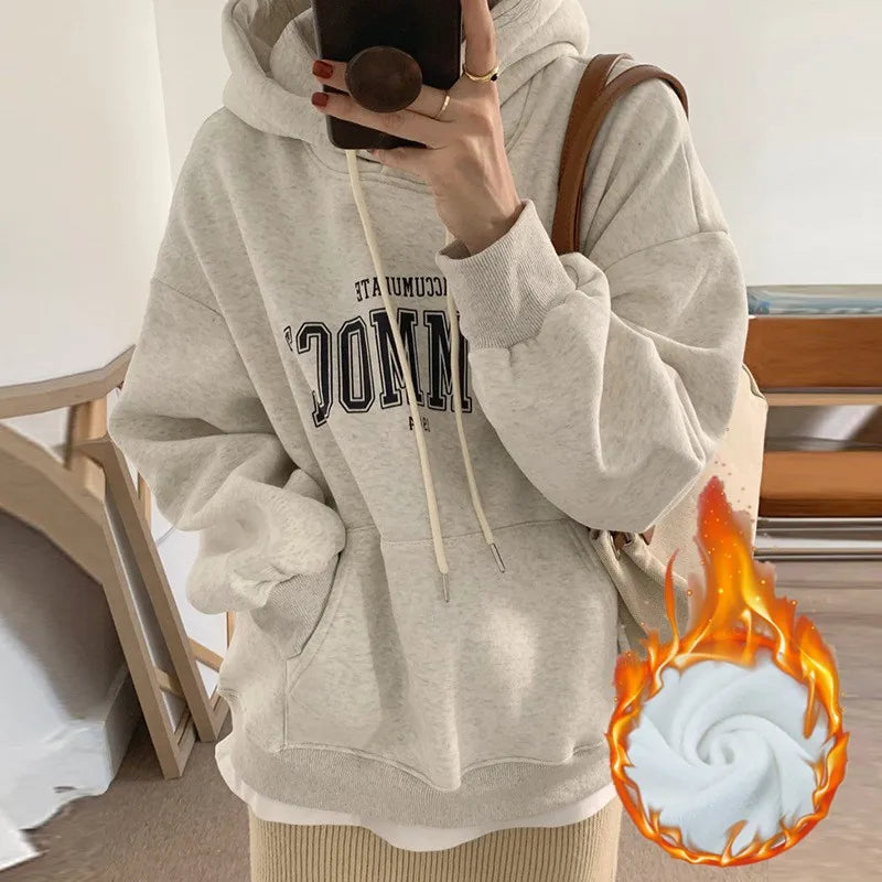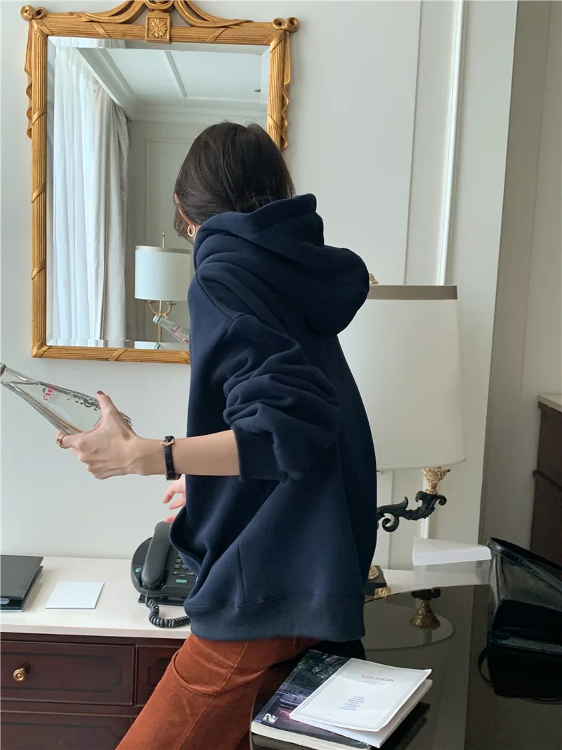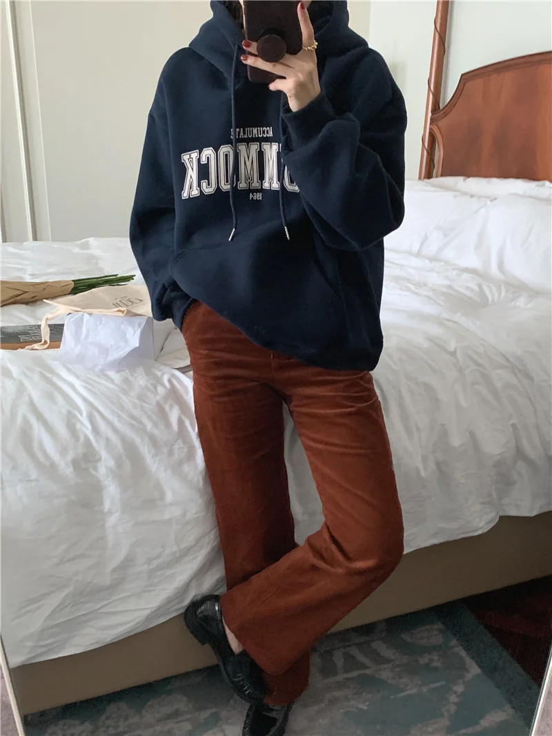 GETADME 한국식 루즈 후드 스타일 스타일리시한 중간 길이 후드 여성용 긴팔 레이지 스타일 레터 프린트 탑