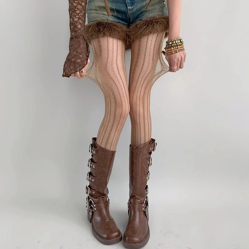 GETADME 로리타 스타킹 여성용 피쉬넷 타이츠 섹시한 기하학적 줄무늬 팬티스타킹 라탄 메시 레이스 고딕 귀여운 심리스 피쉬넷 레깅스