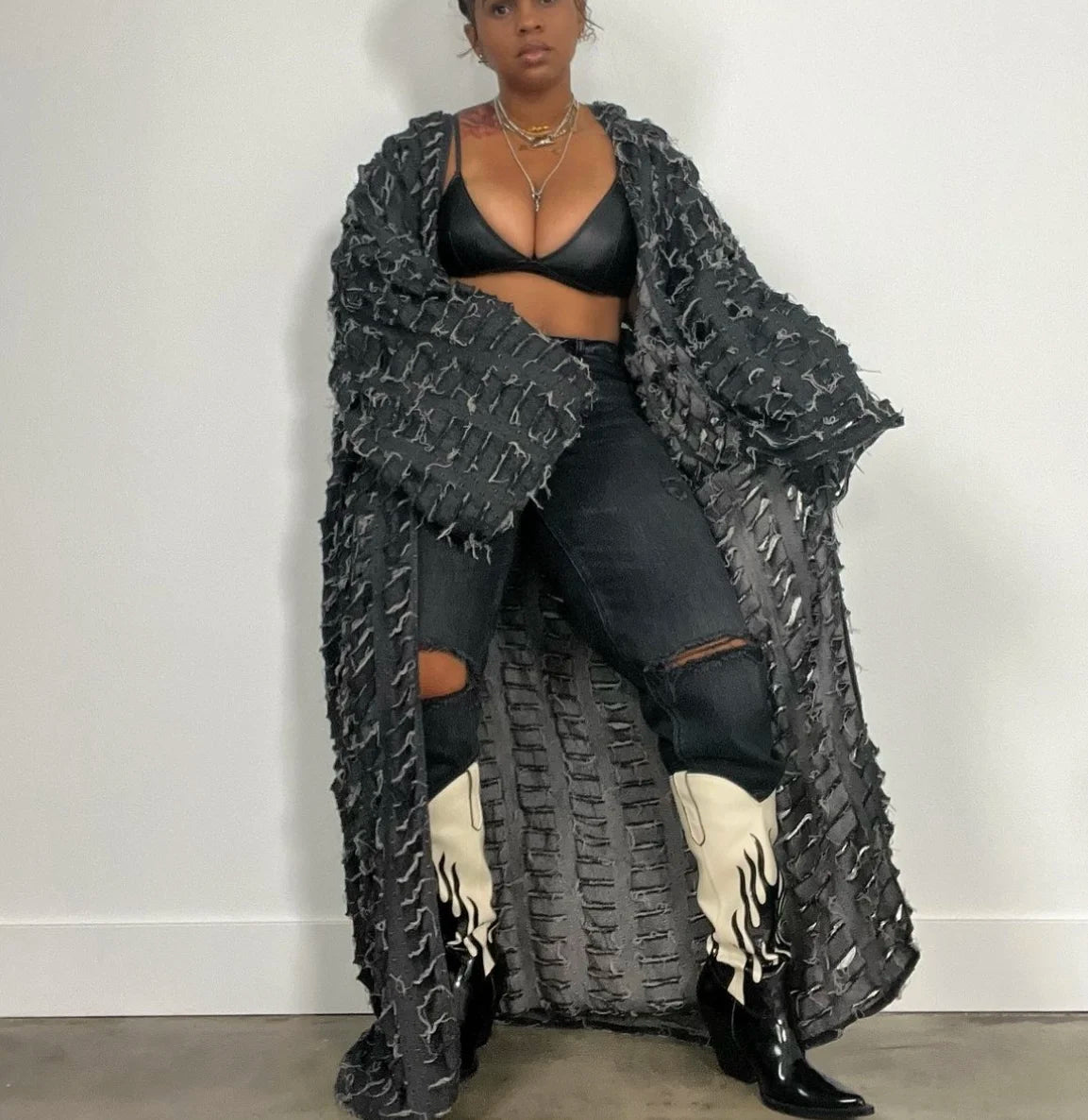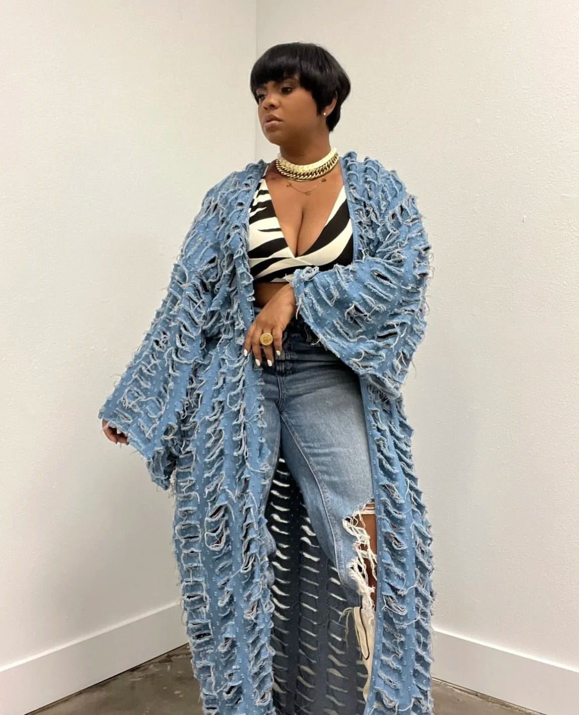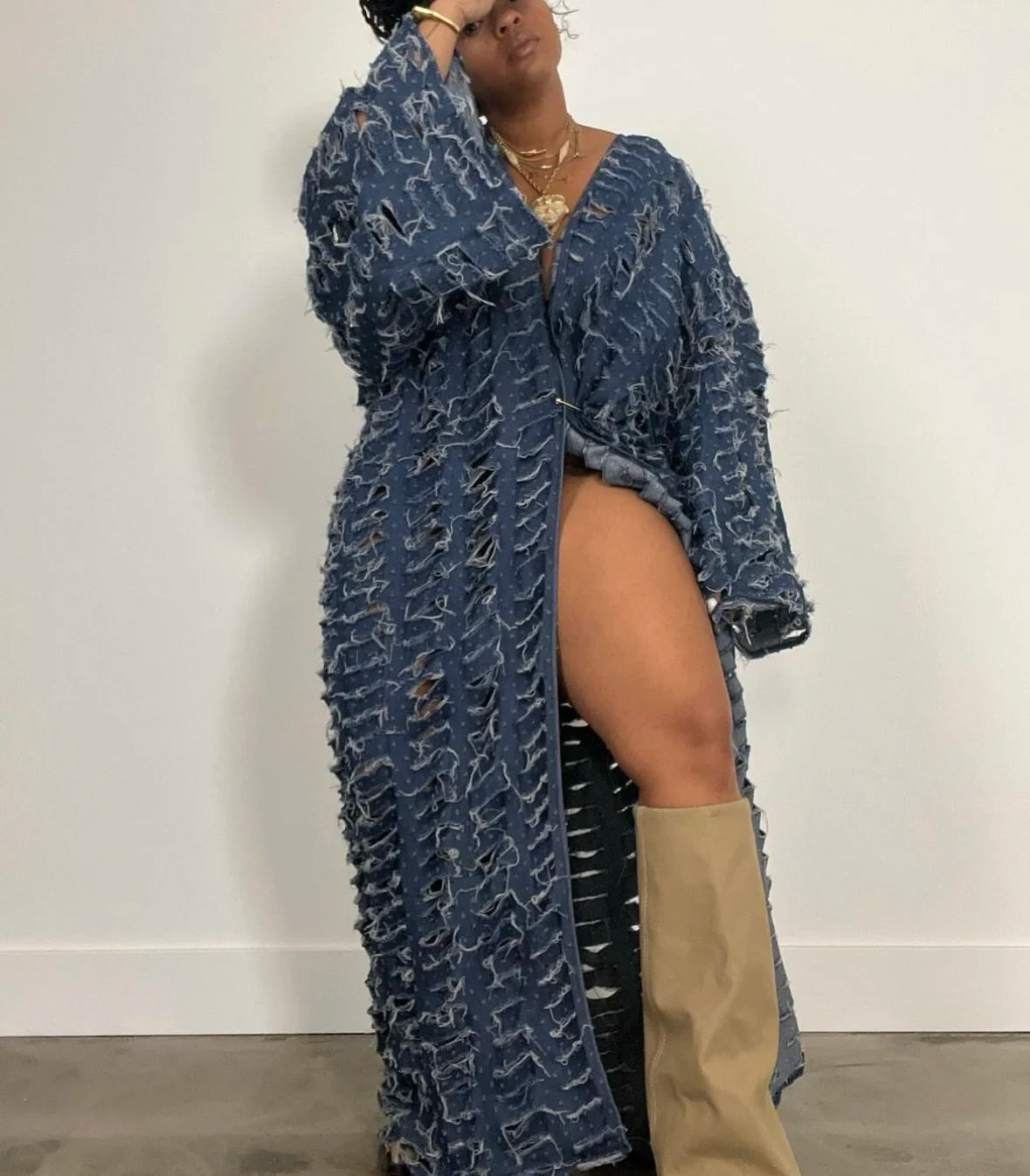 GETADME 여성용 새로운 아프리카 패션 가디건 가을 봄 섹시한 홀로우 데님 롱 다운 코트 플러스 유럽 여성 수영복 롱 기모노