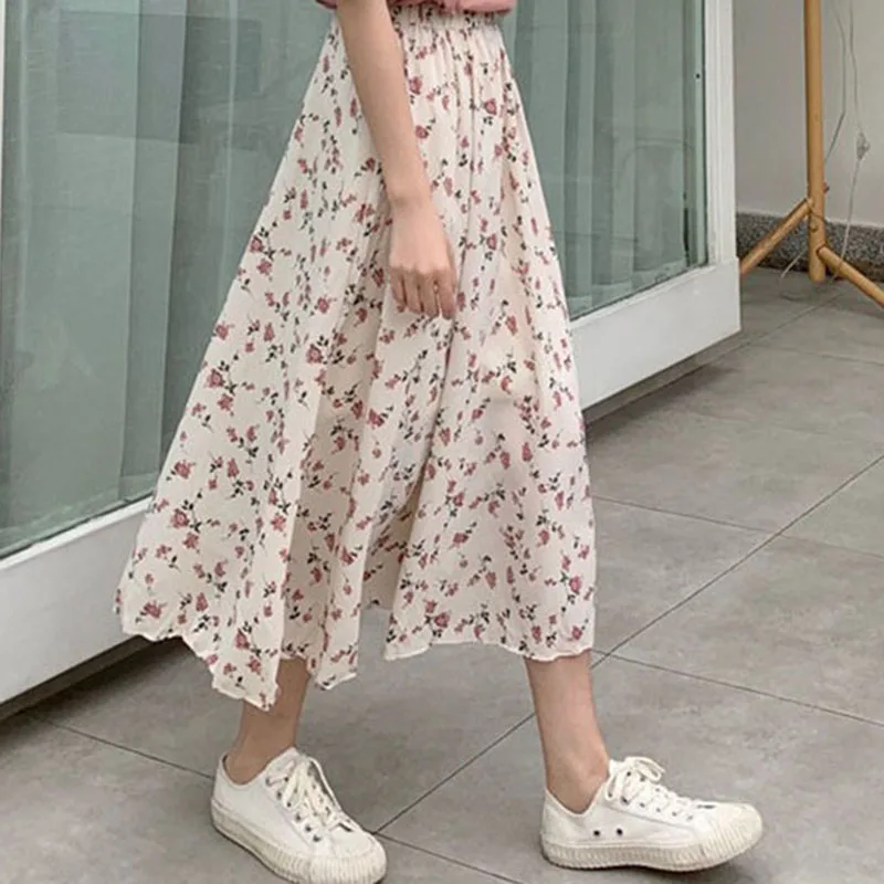 GETADME 새로운 여성 캐주얼 한국 여성 메쉬 스커트 패션 후크 꽃 느슨한 미디 스커트 우아한 모든 매치 스커트 여름