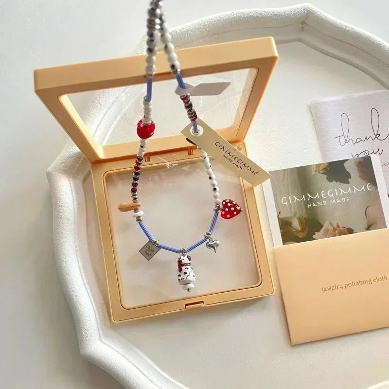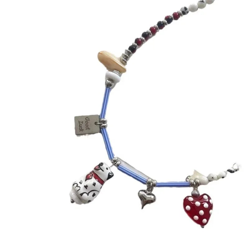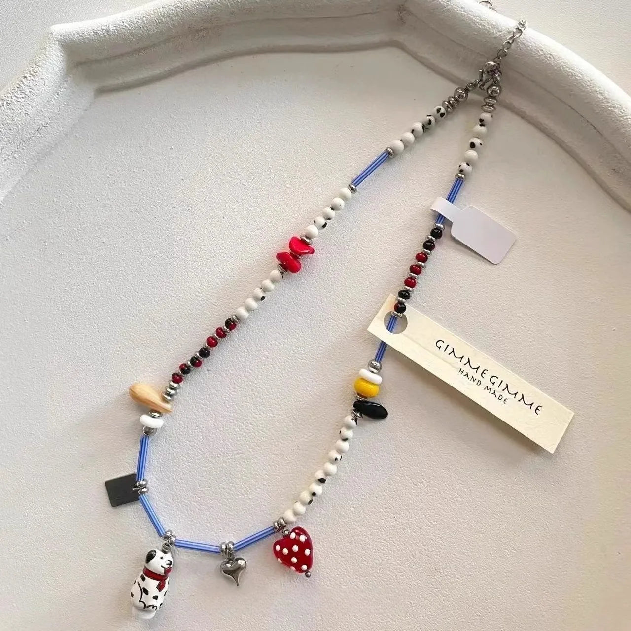 GETADME 새로운 스타일 개인화 패션 스트링 흑백 구슬 점박이 강아지 펜던트 목걸이 고양이 초커 여성용 선물 주얼리