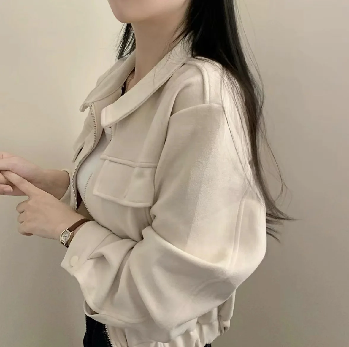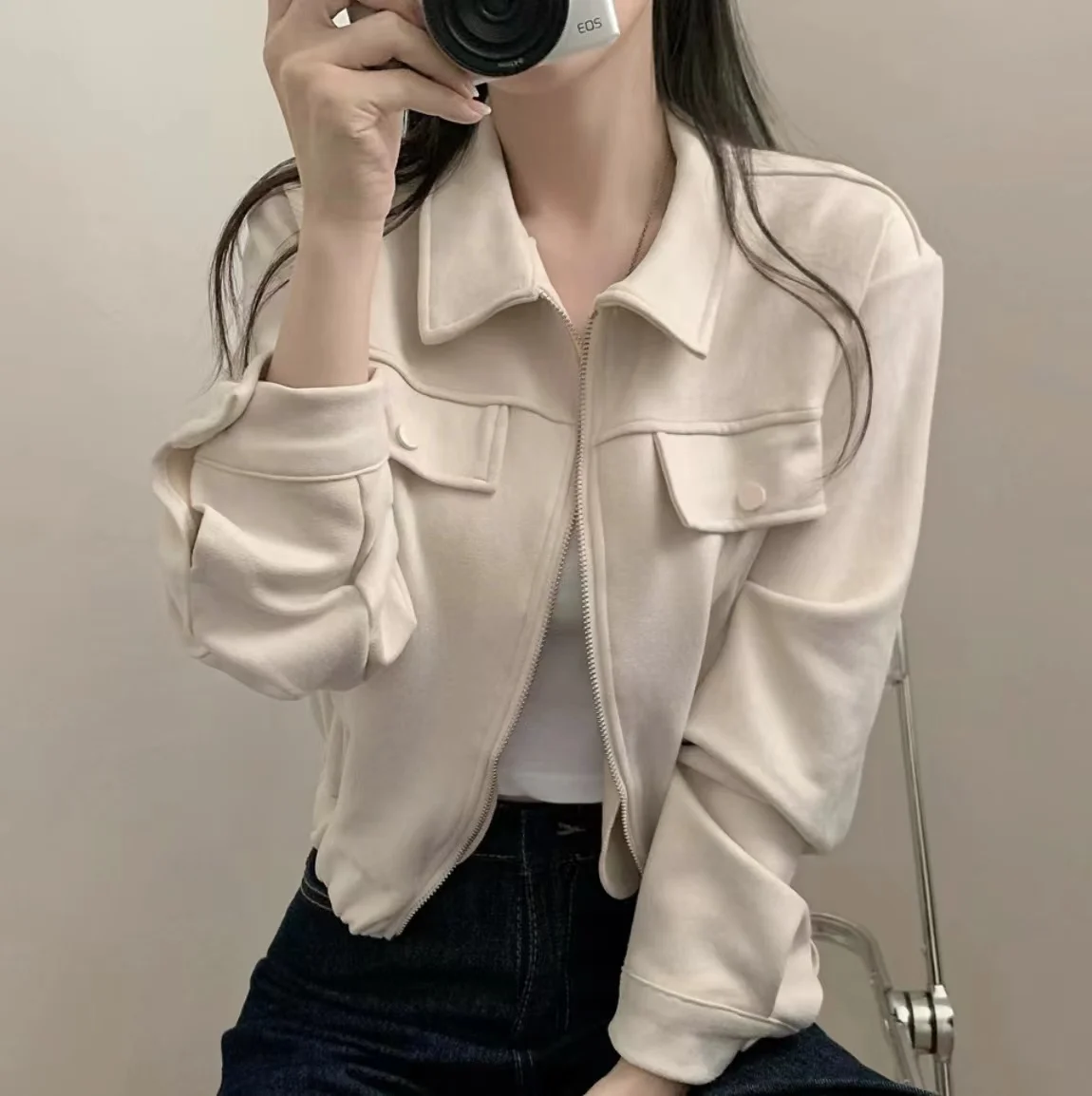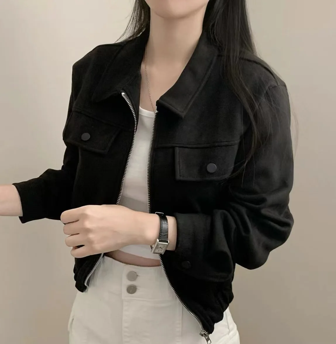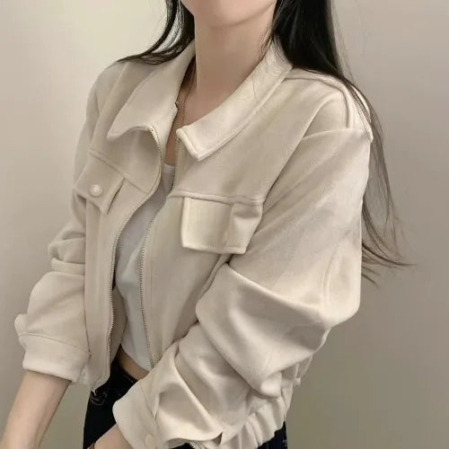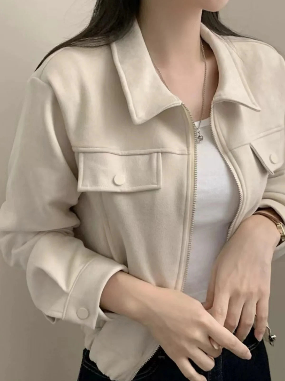GETADME 레트로 라펠 모터사이클 재킷 여성용 스웨이드 롱 스웨이드 루즈핏 슬릿 지퍼 디자인 가을 아우터웨어 Faionable
