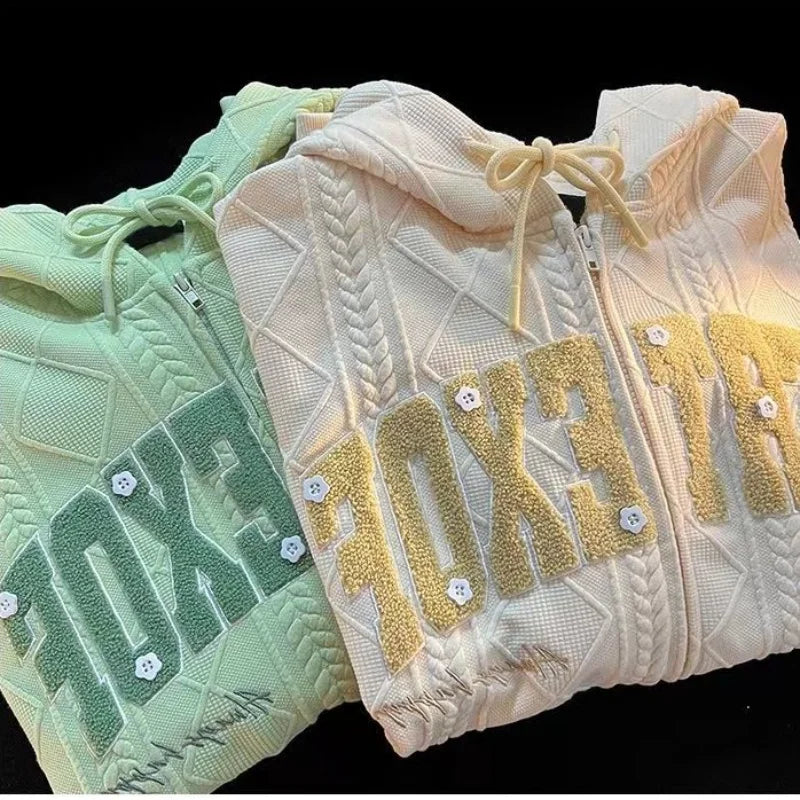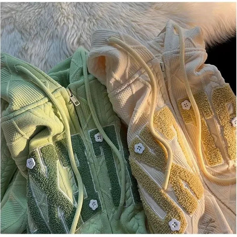 GETADME 레트로 레터 자수 후드 스웨트셔츠 카디건 (여성용, 봄/가을용) 얇고 루즈한 캐주얼 커플 재킷