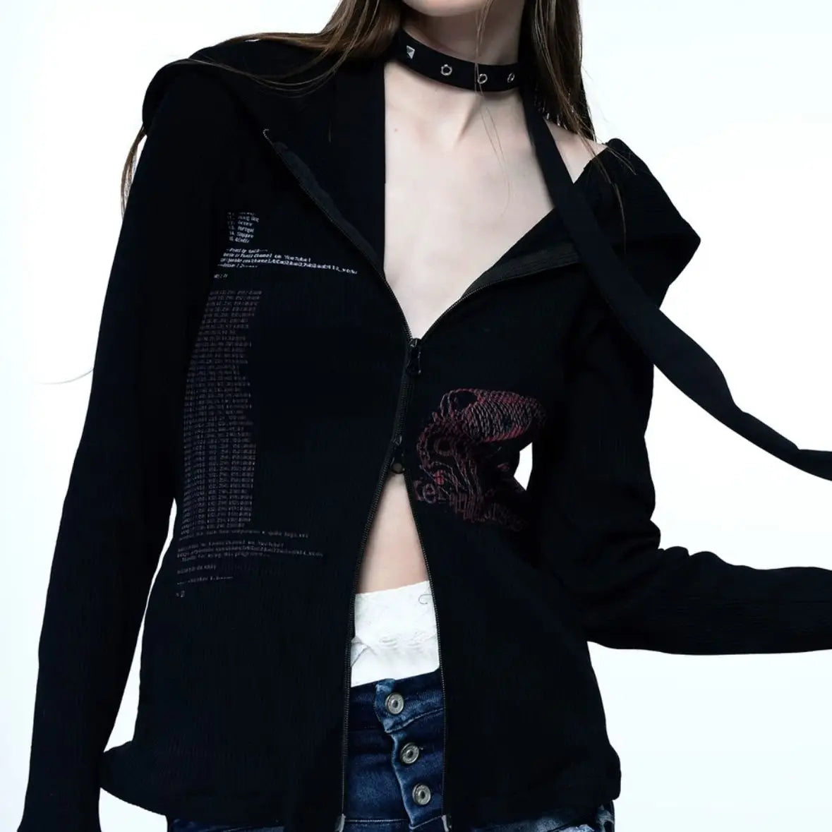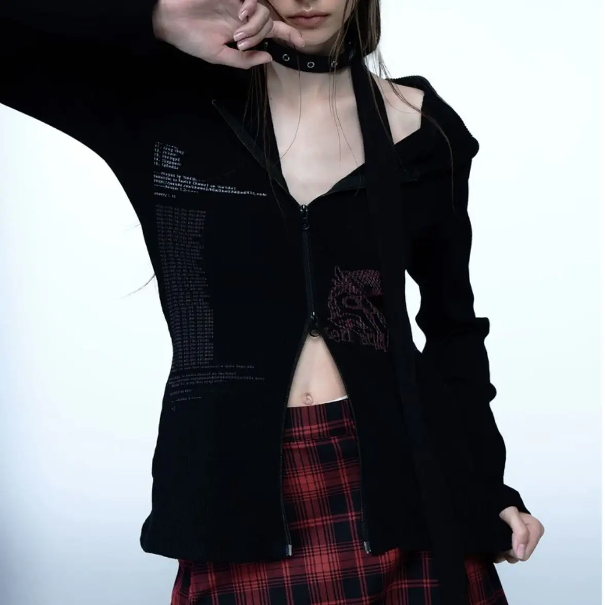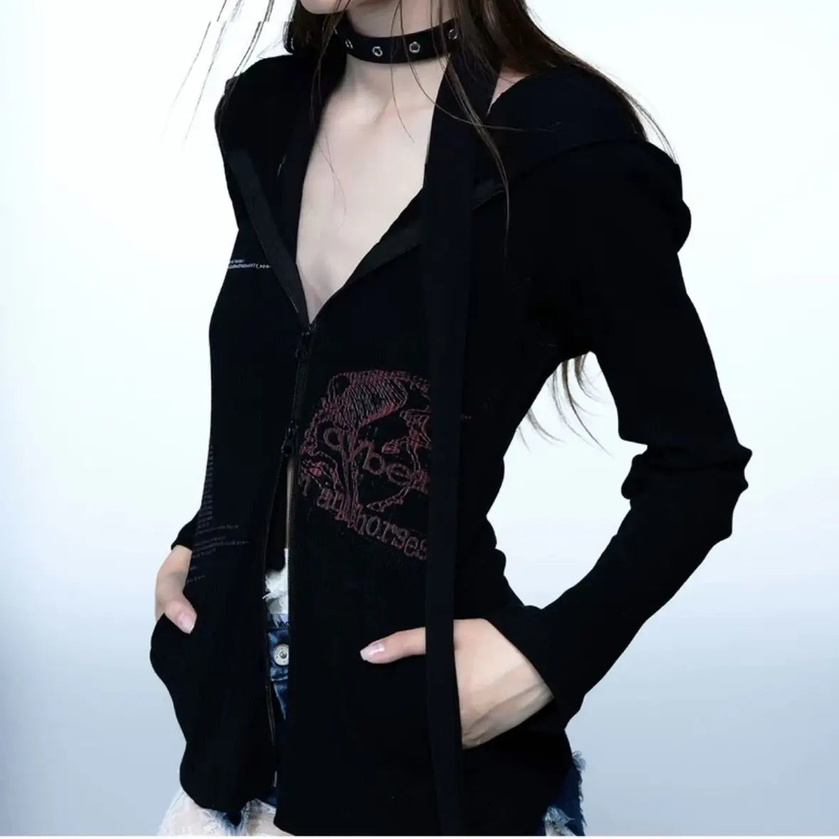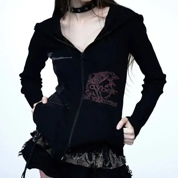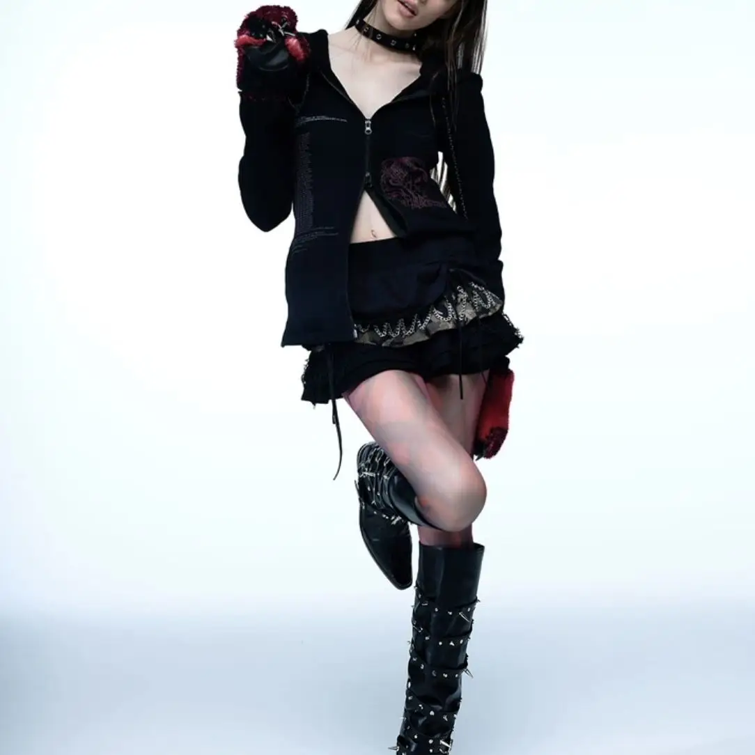 GETADME 레트로 오리지널 펑크 힙합 록 밴드 레드 블랙 Y2K 스파이시 걸 헤비웨이트 슬림핏 후드 더블 지퍼 카디건 스웨트셔츠