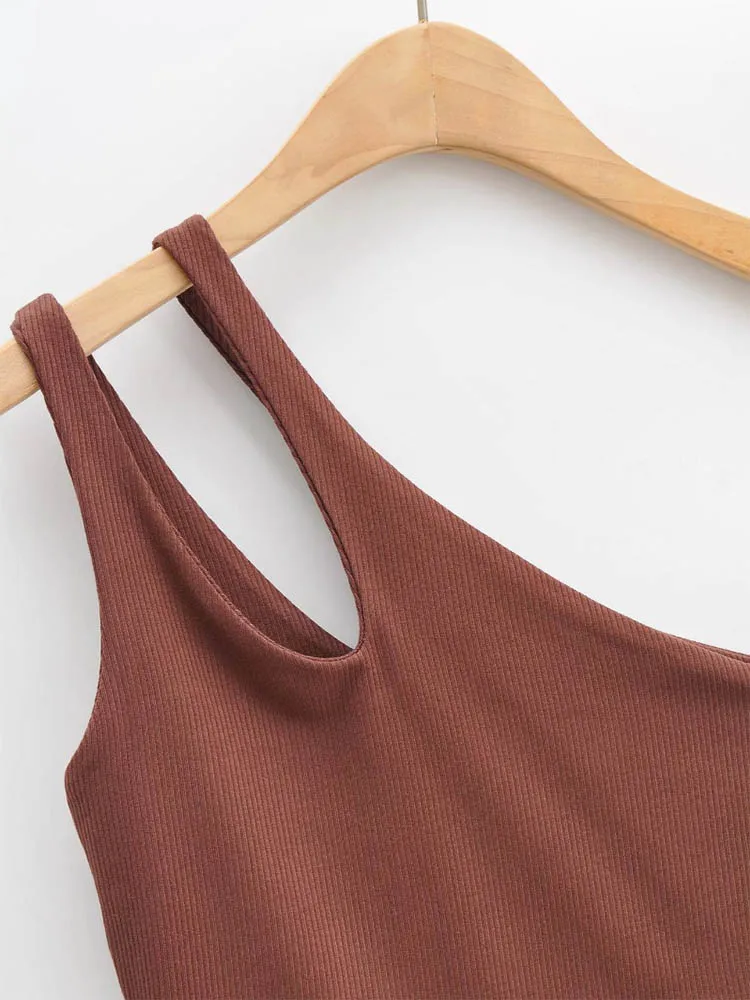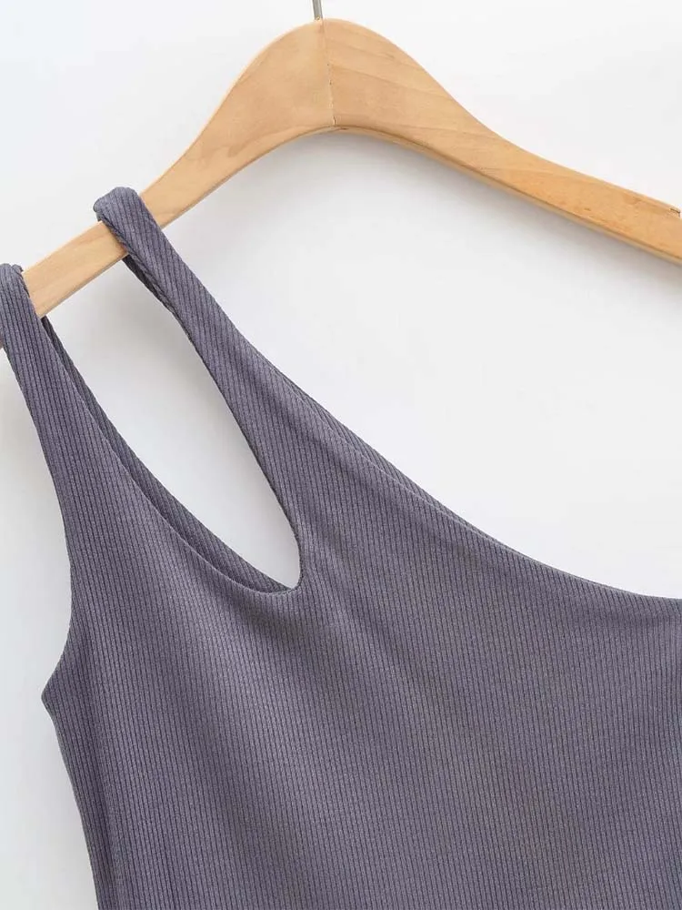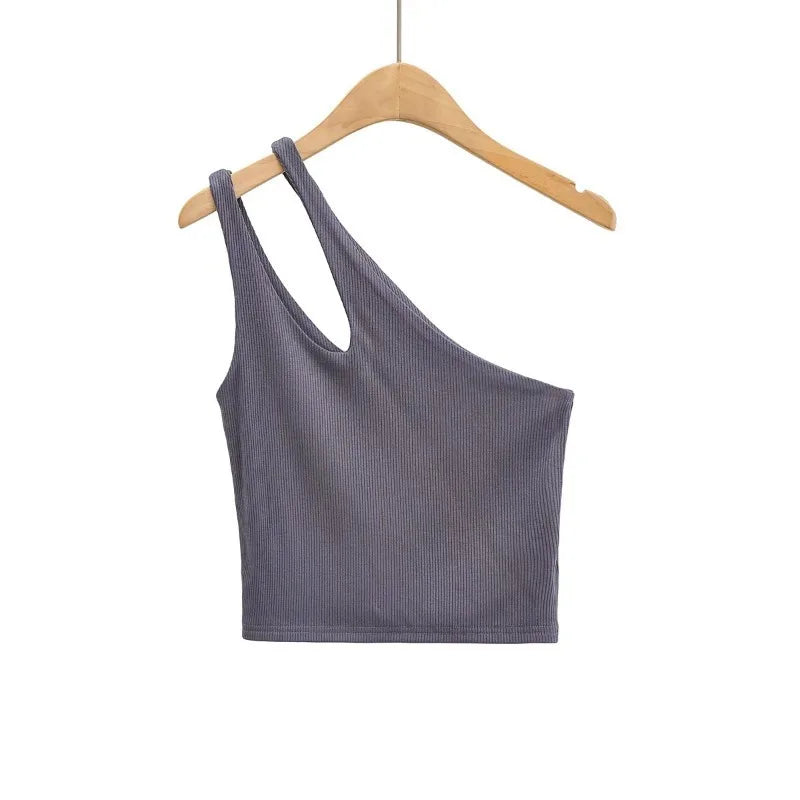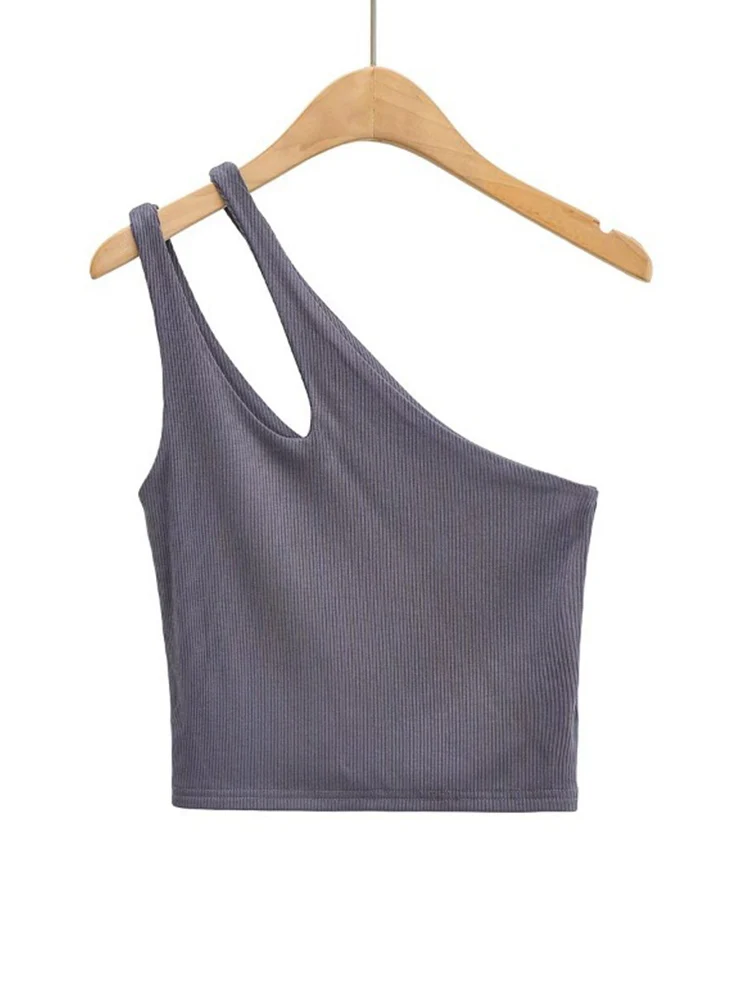 GETADME 섹시 여성용 크롭 탑 솔리드 스트레치 핏 니트 슬리브리스 원숄더 할로우 아웃 베이직 백리스 탱크 탑
