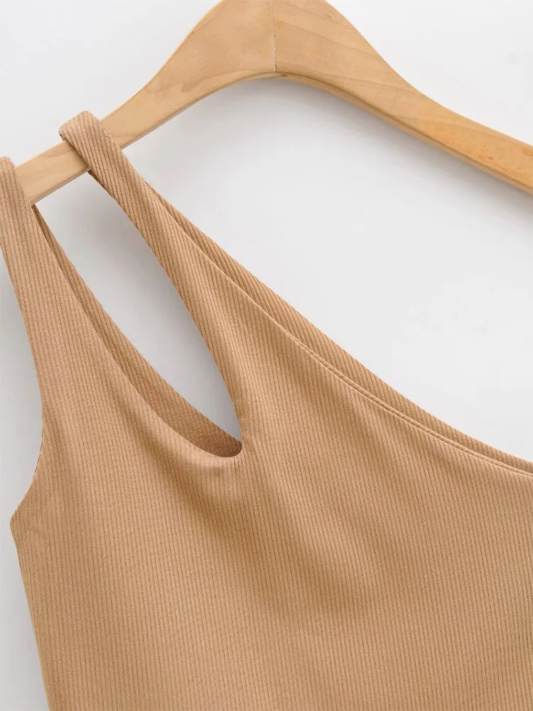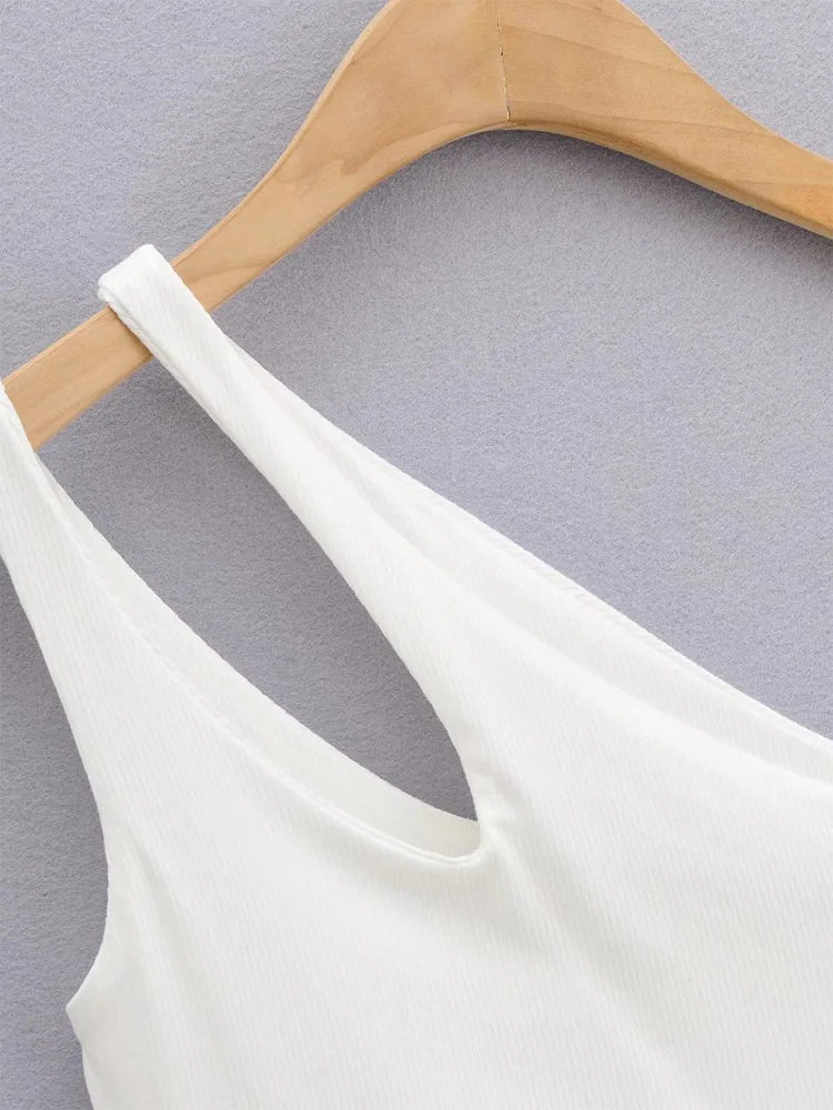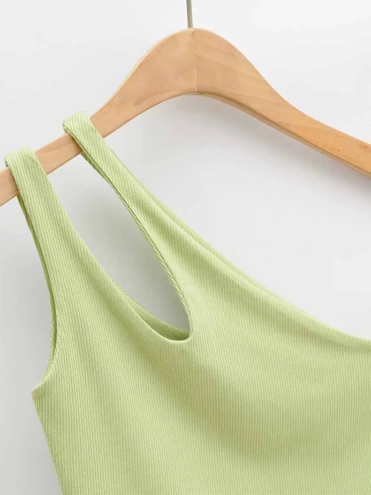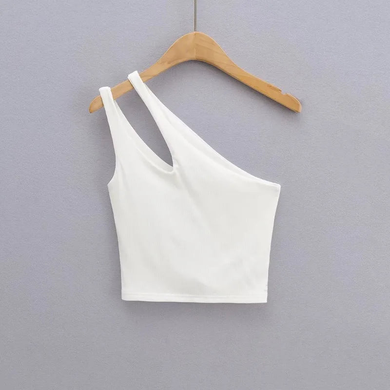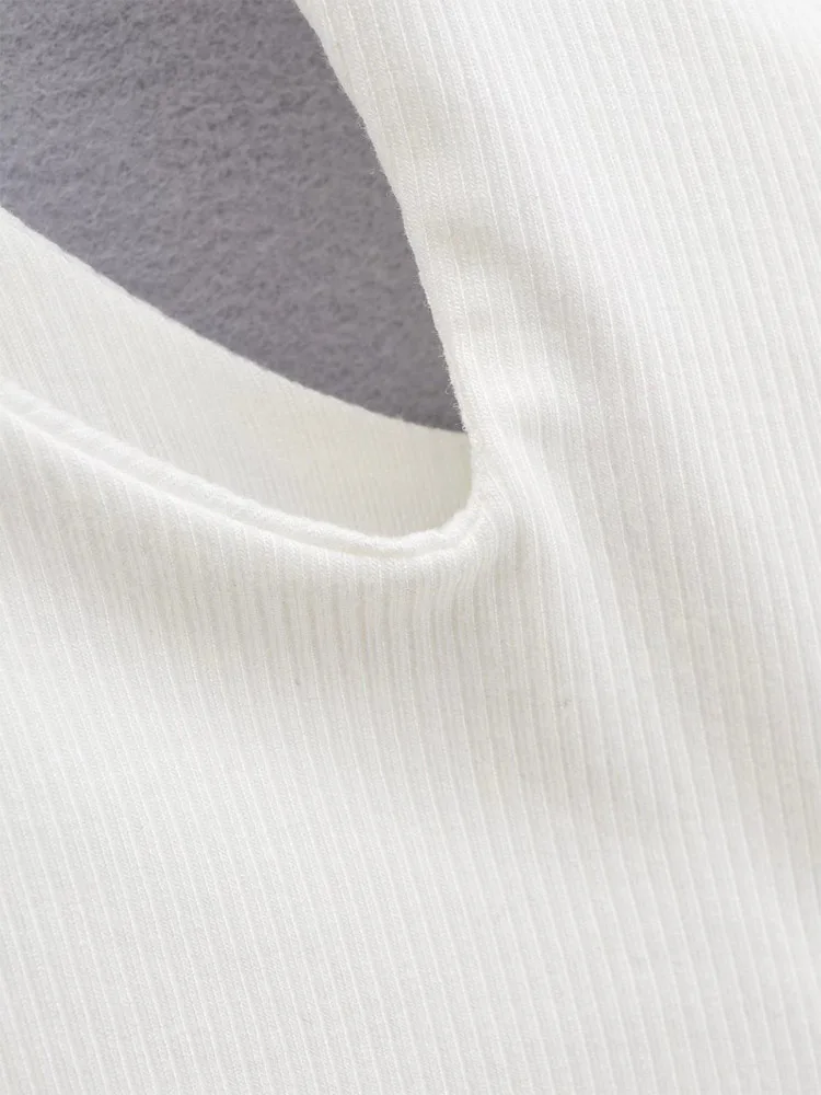 GETADME 섹시 여성용 크롭 탑 솔리드 스트레치 핏 니트 슬리브리스 원숄더 할로우 아웃 베이직 백리스 탱크 탑