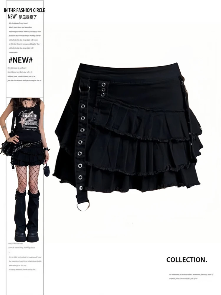 GETADME 여름 여성 다크 아카데미아 고블린 코어 미니 플리츠 스커트 일본 Y2K 2000년대 미학 그런지 사이버 펑크 E-걸 고스 하라주쿠