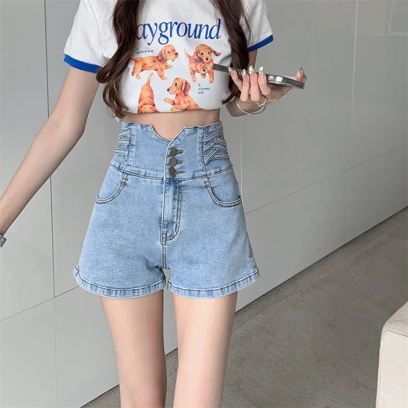 GETADME 여름 여성 한국식 2000년대 갸루 진 반바지 하이웨이스트 데님 핫 팬츠 일본 Y2K 스트리트웨어 하라주쿠 패션 그런지 케이팝
